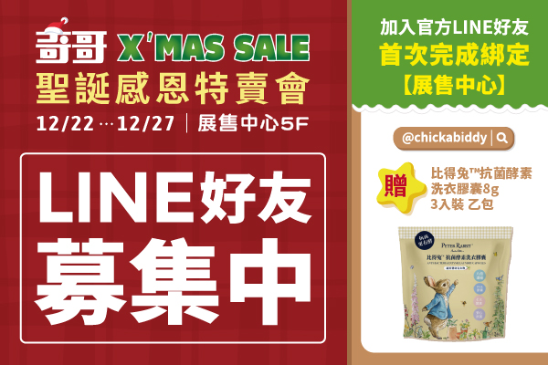 綁定「展售中心」,即贈 聖誕小禮【比得兔抗菌酵素洗衣膠囊8g 3入裝 】 乙個