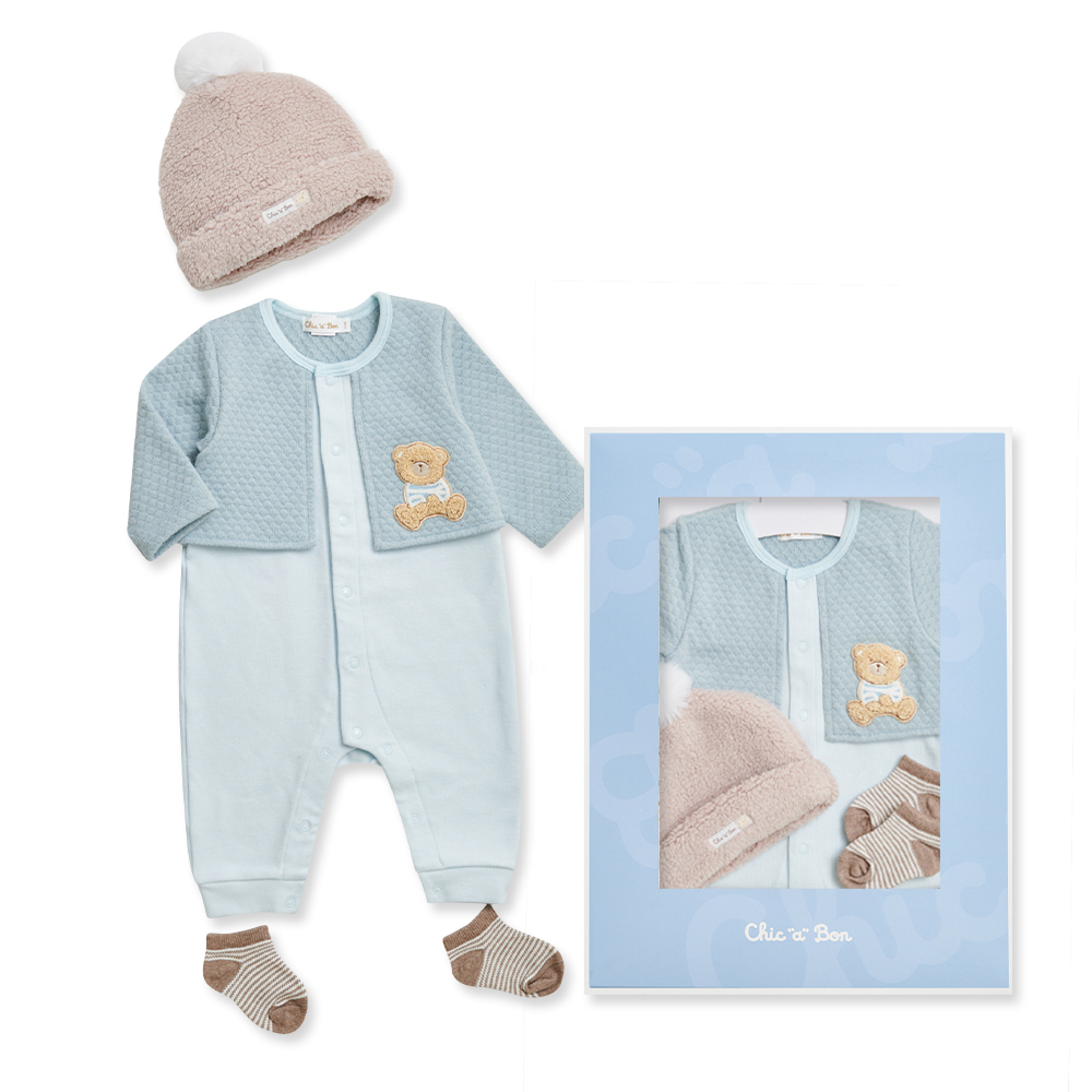 Chic a Bon 小熊寶貝兔裝禮盒/連身衣3件組禮盒 (兔裝+帽子+襪子)