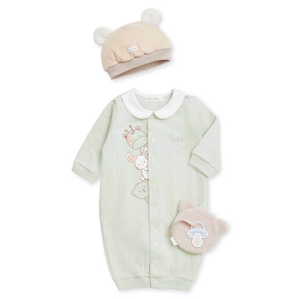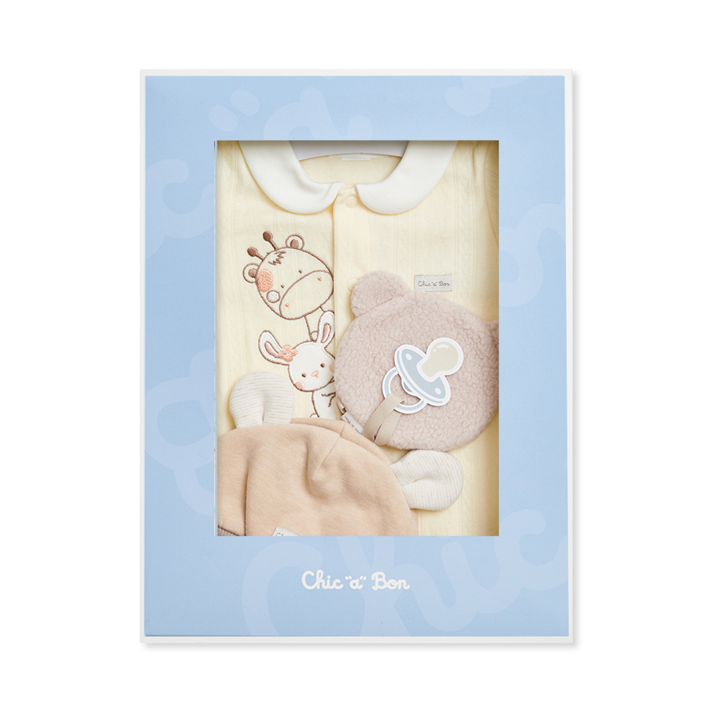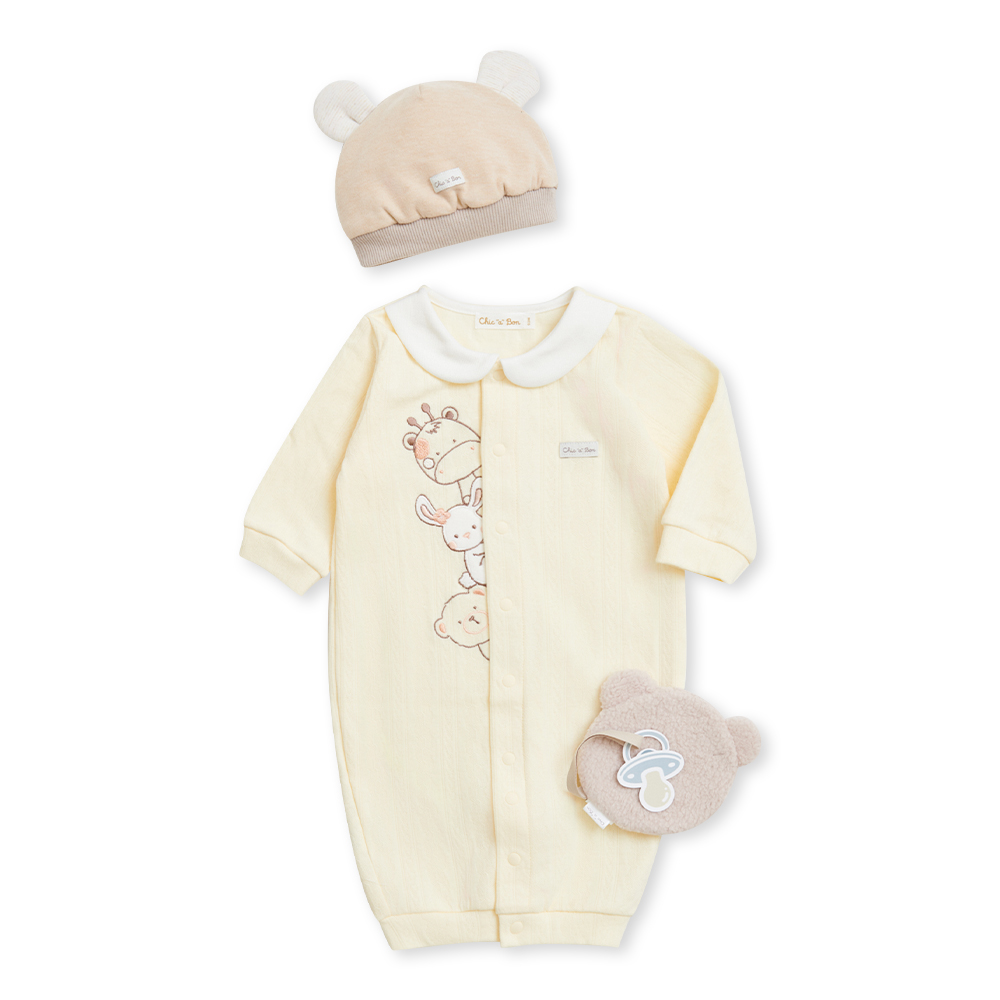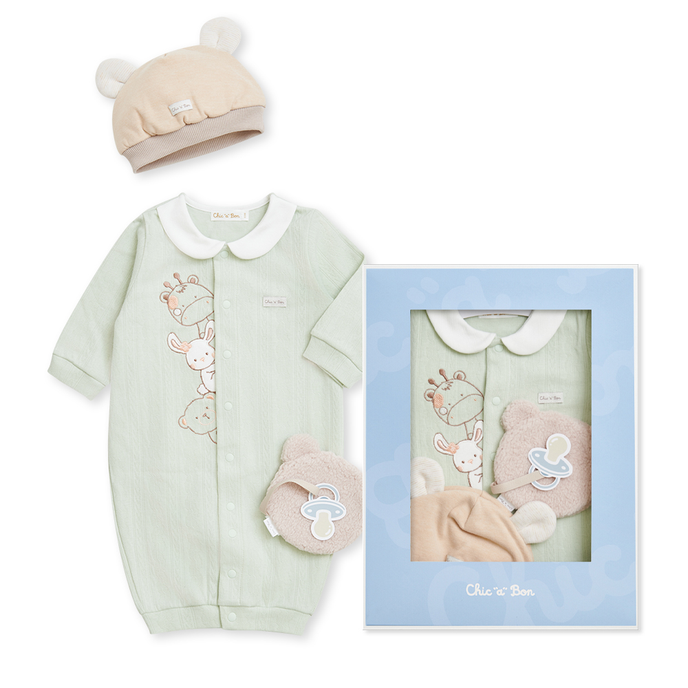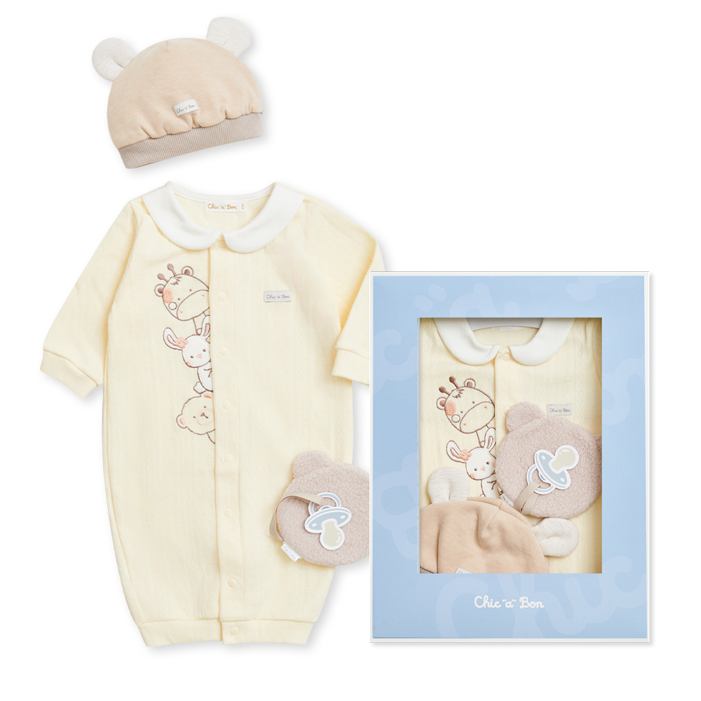 Chic a Bon 動物好朋友妙妙裝禮盒/連身衣3件組禮盒 (妙妙裝+帽子+安撫巾)