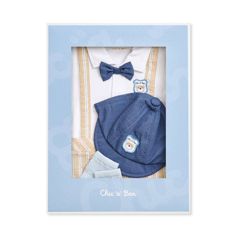 Chic a Bon 小熊紳士褐色吊帶兔裝禮盒/連身衣3件組禮盒 (兔裝+帽子+襪子)