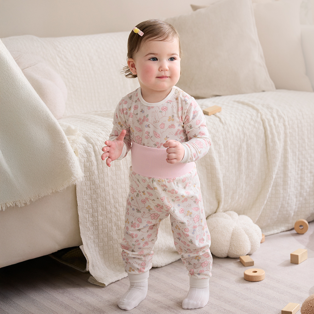 花徑小兔肚圍嬰兒長褲(美麗諾羊毛布)