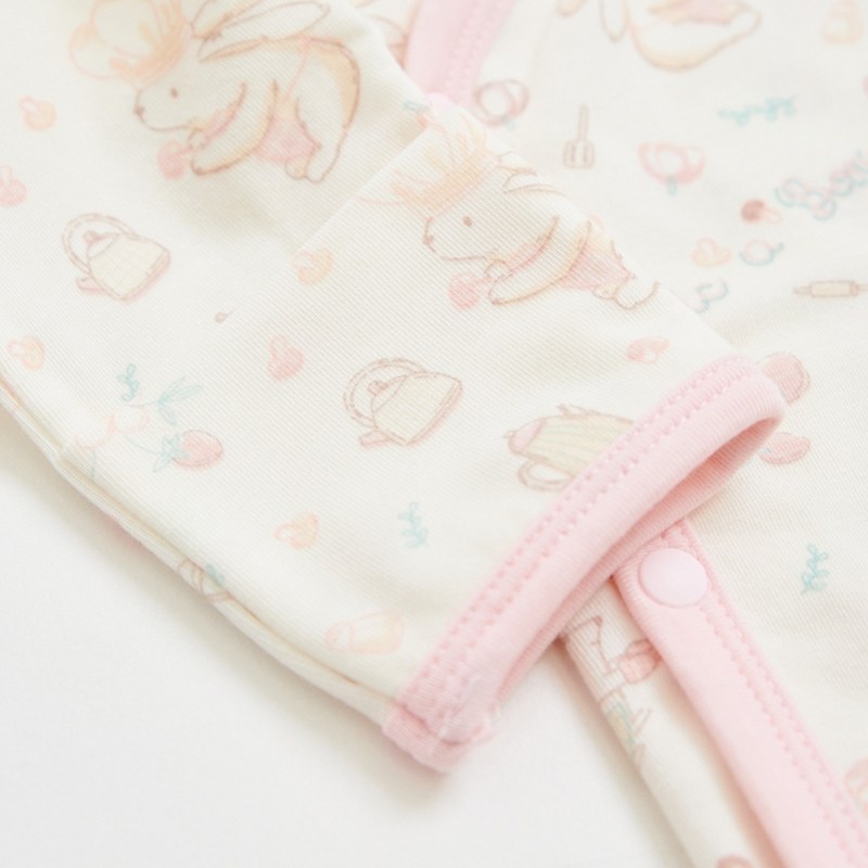 萌兔廚房長袖兩段式調節開襟包屁衣 (美麗諾羊毛布)