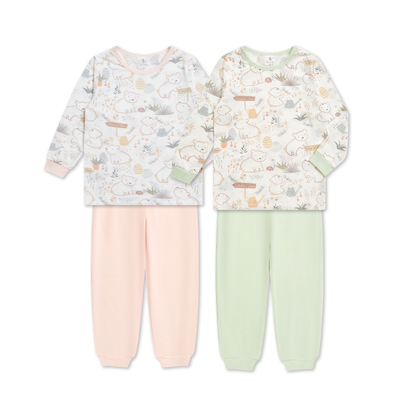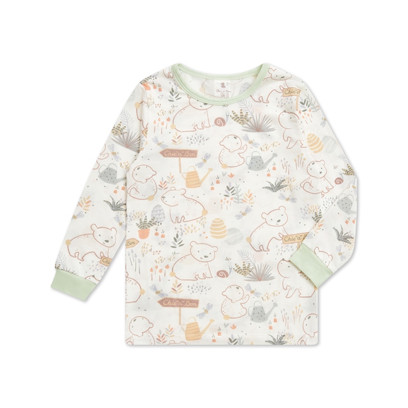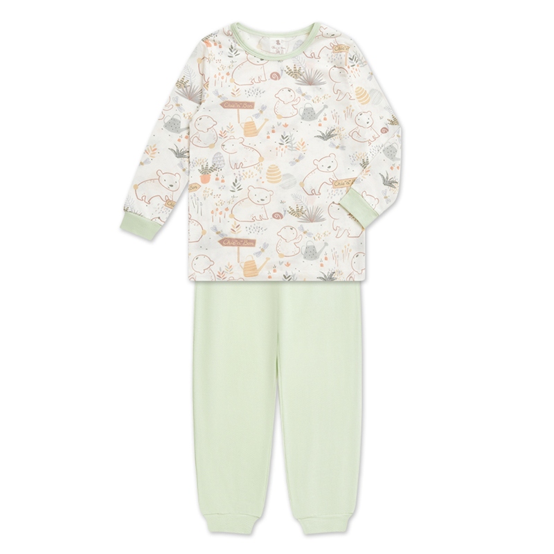 小熊牧場圓領冷氣衫套裝 (天絲洞感緹花布)