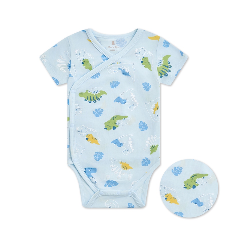 恐龍家族短袖兩段式調節開襟包屁衣 (水晶紗)