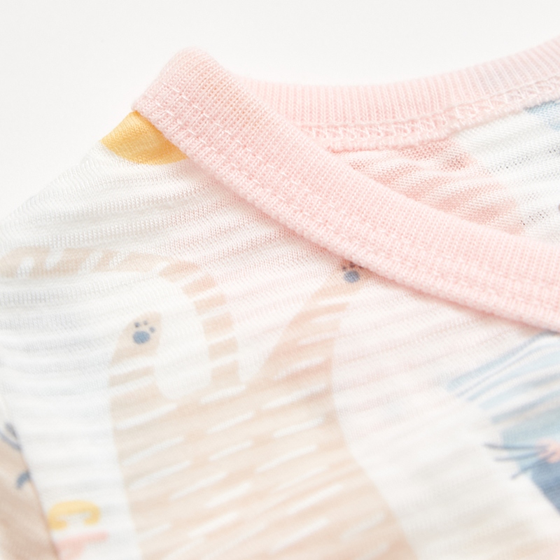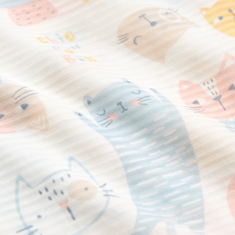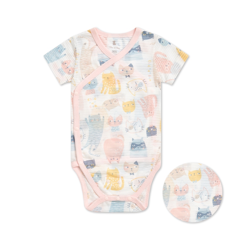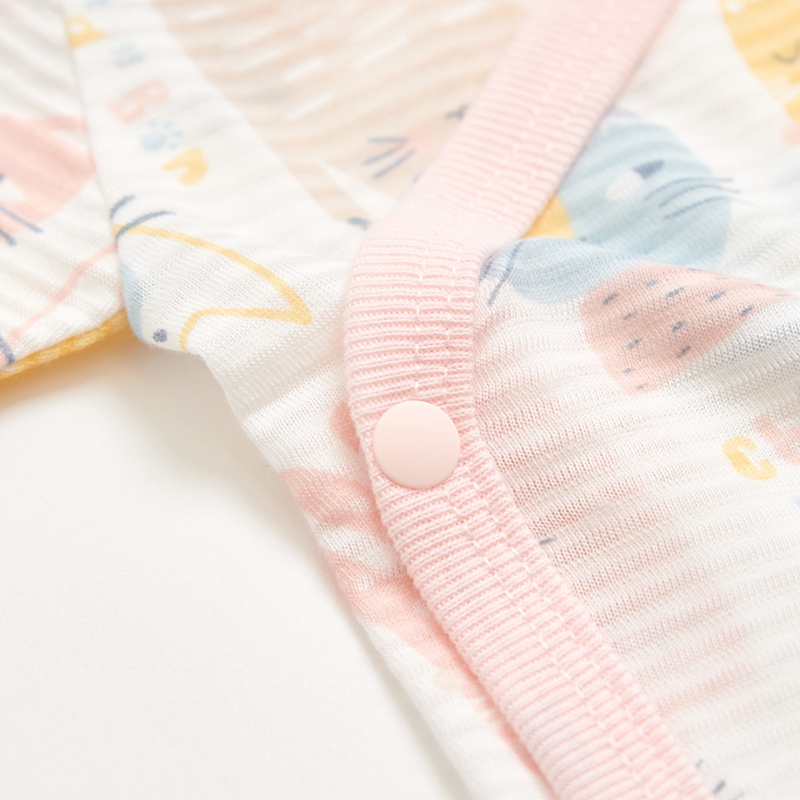 萌貓樂園短袖兩段式調節開襟包屁衣 (天絲橫紋單面布)