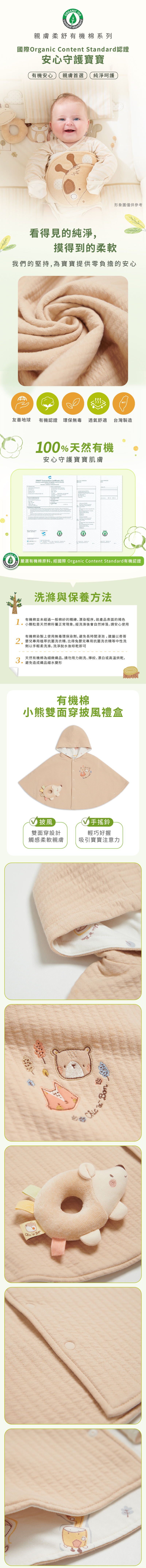 有機棉小熊雙面穿披風/2件組禮盒 (披風+手搖鈴)