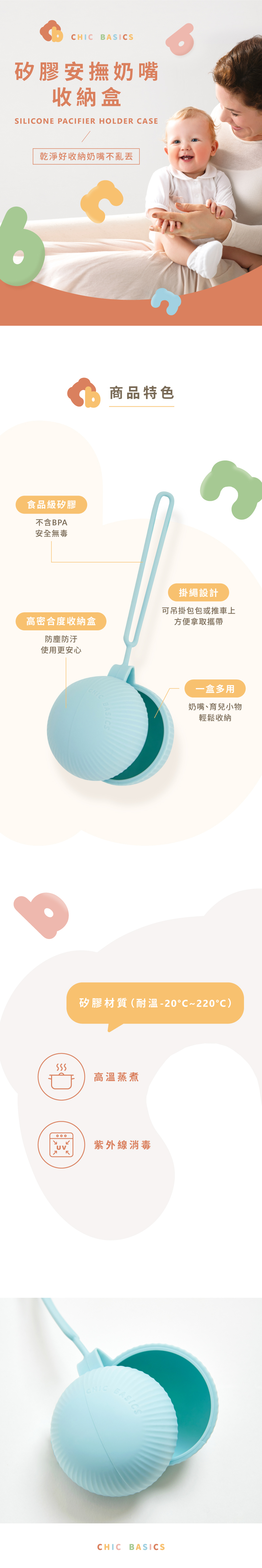 適用於各式奶嘴,可收納寶寶飾品、育兒用品等