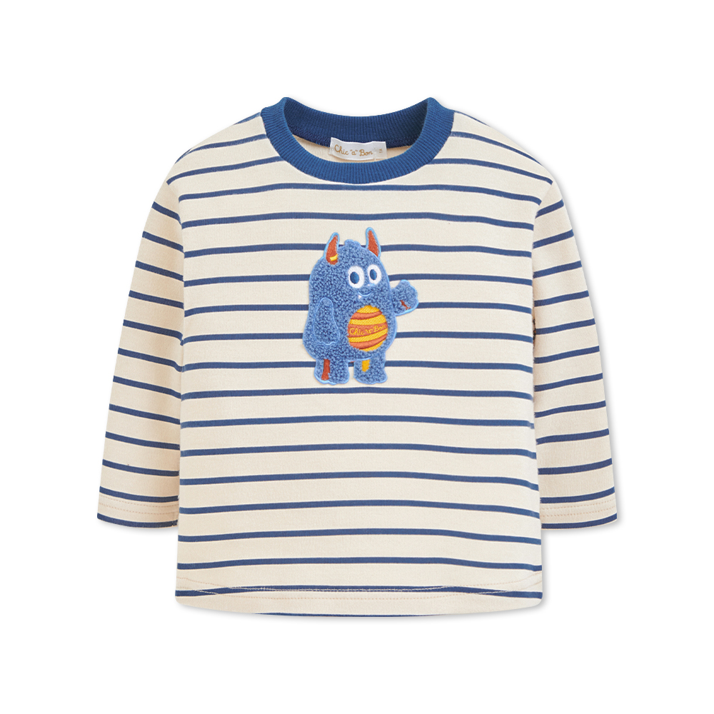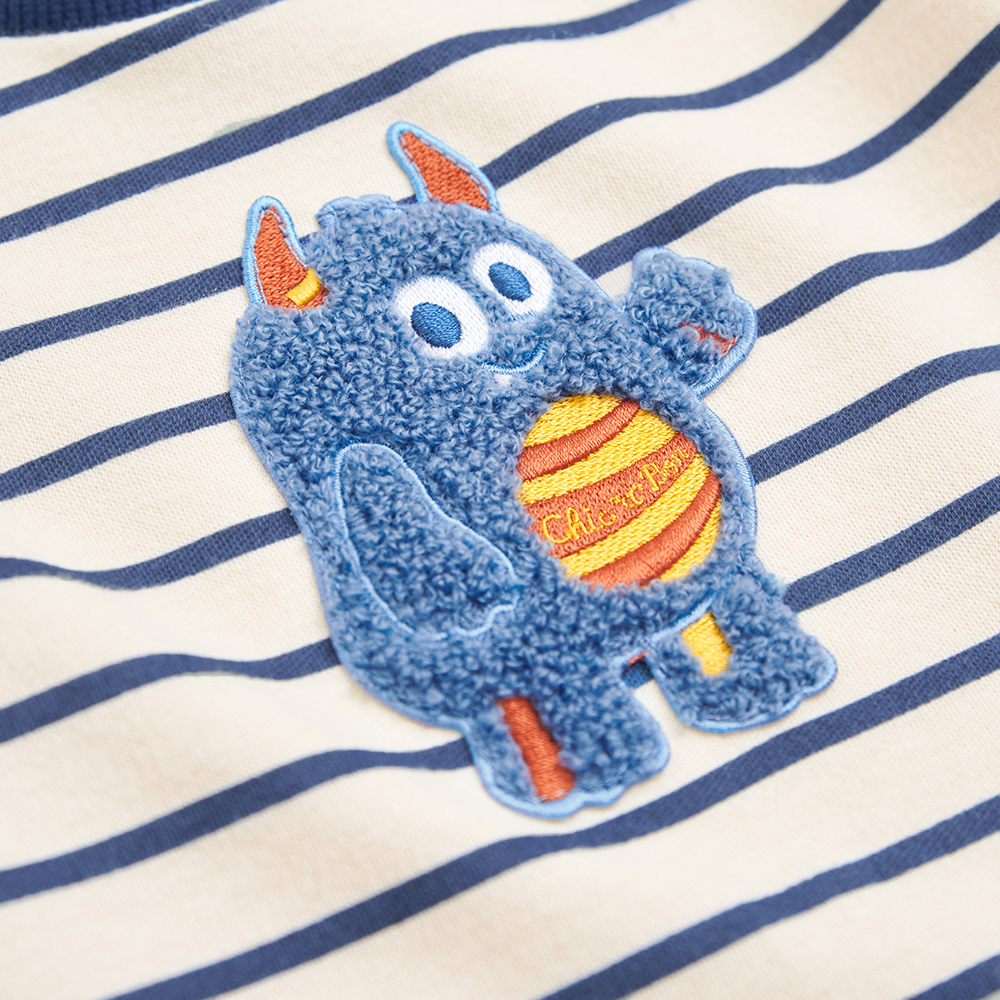 嗨怪獸們藍色條紋純棉長袖T恤
