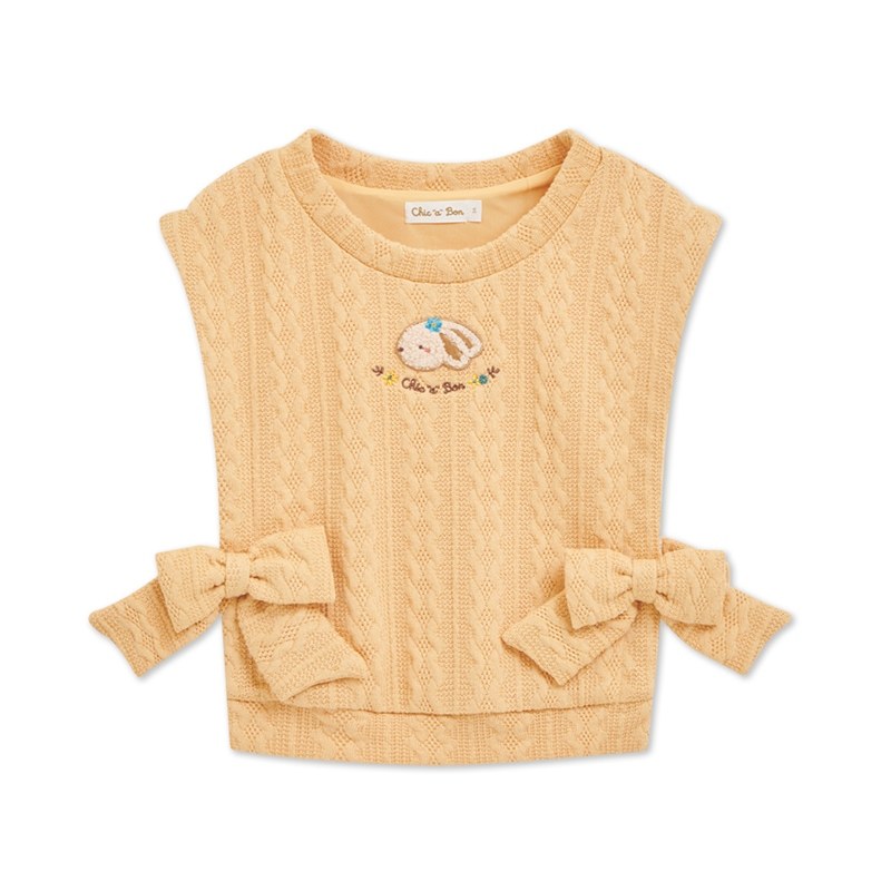 雅緻熊麻花編織蝴蝶結罩衫背心