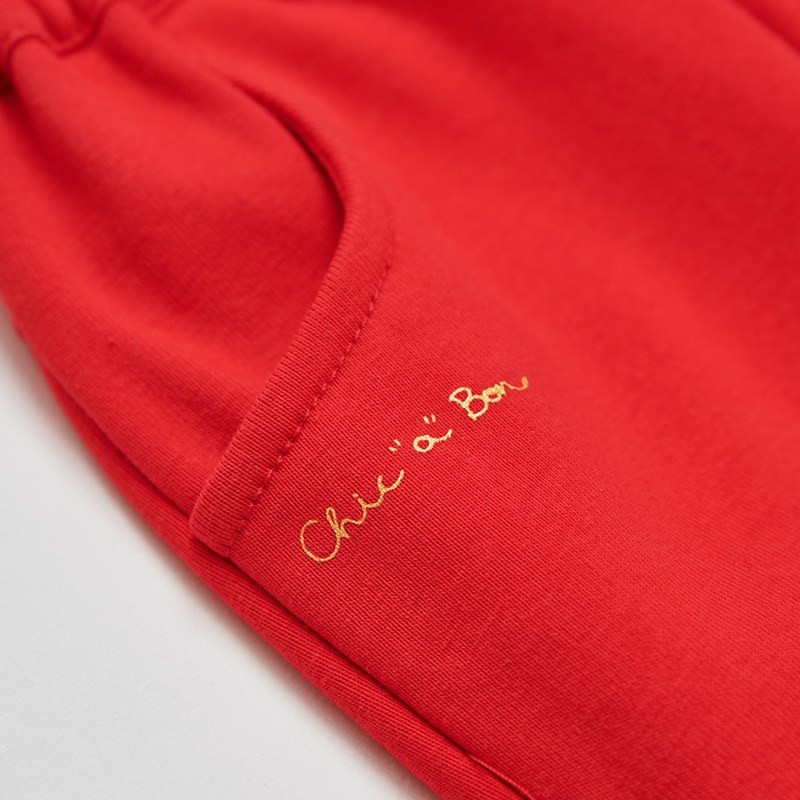 歡樂熊紅色羅紋長褲