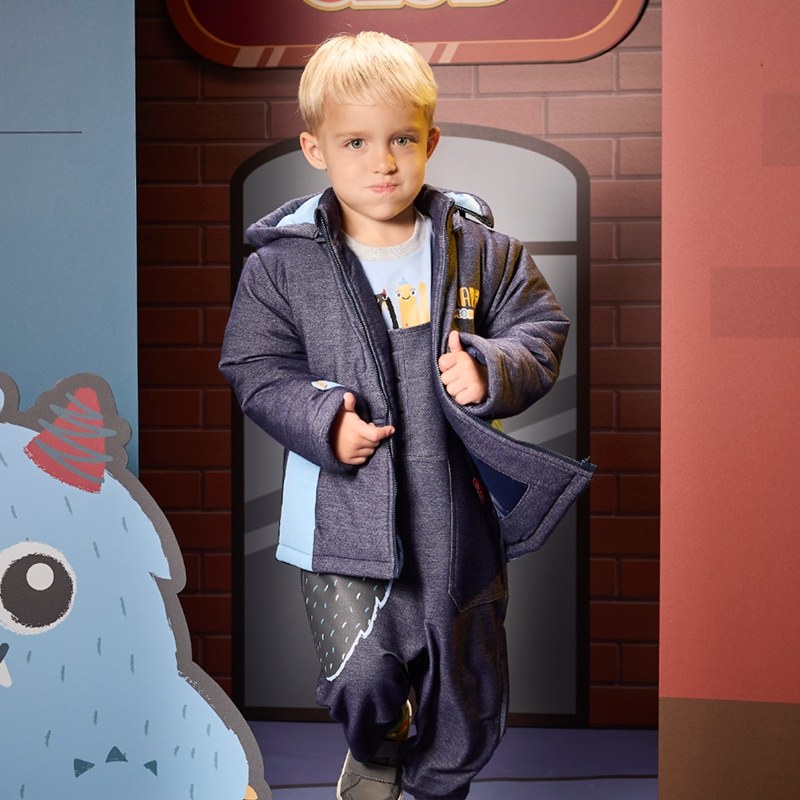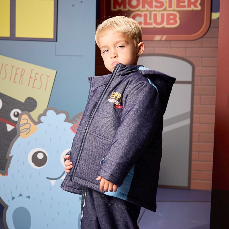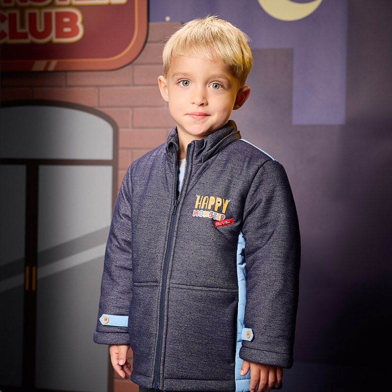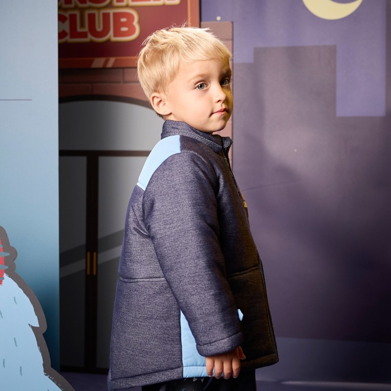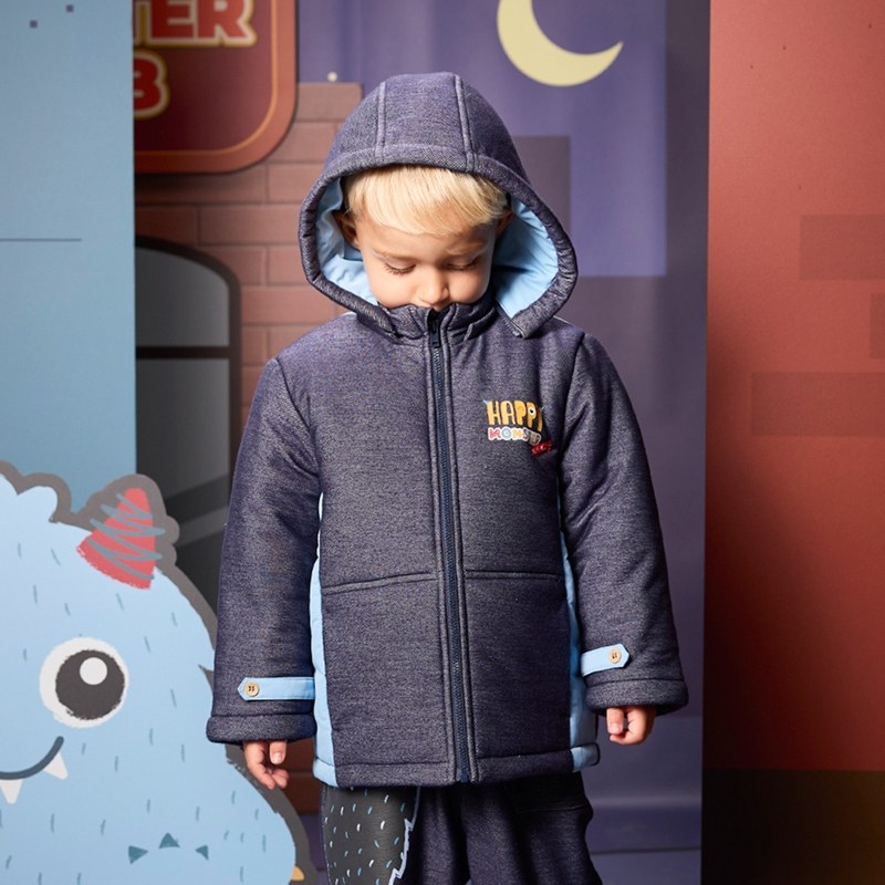 怪獸俱樂部牛仔藍鋪棉外套 -帽子可拆 (吸濕排汗)