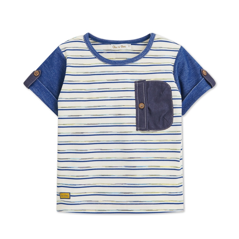 恐龍探險趣條紋口袋上衣