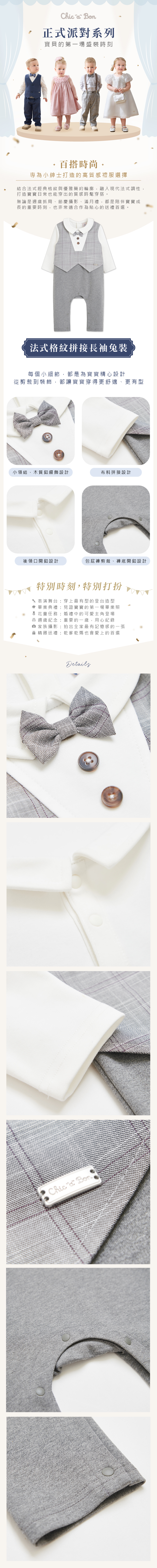 正式派對法式格紋拼接長袖兔裝