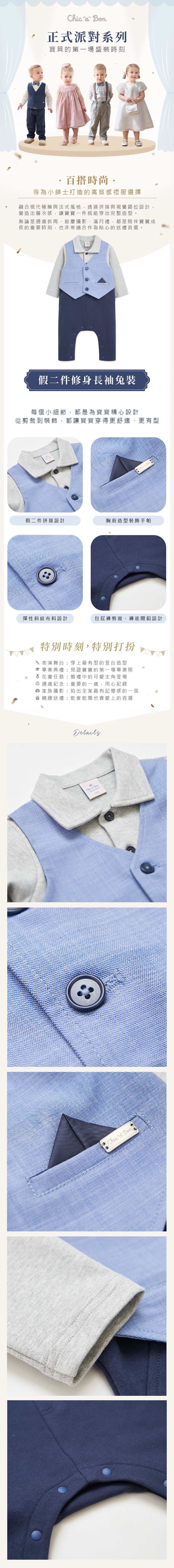 ✔ 前口袋手帕裝飾,增添可愛紳士感與造型細節