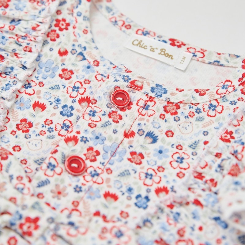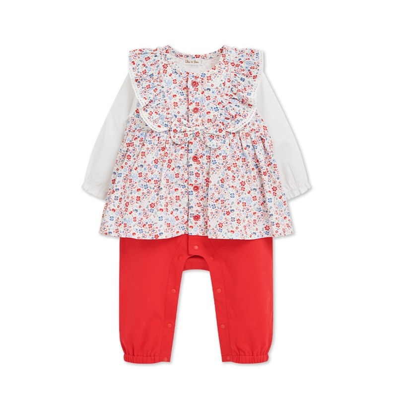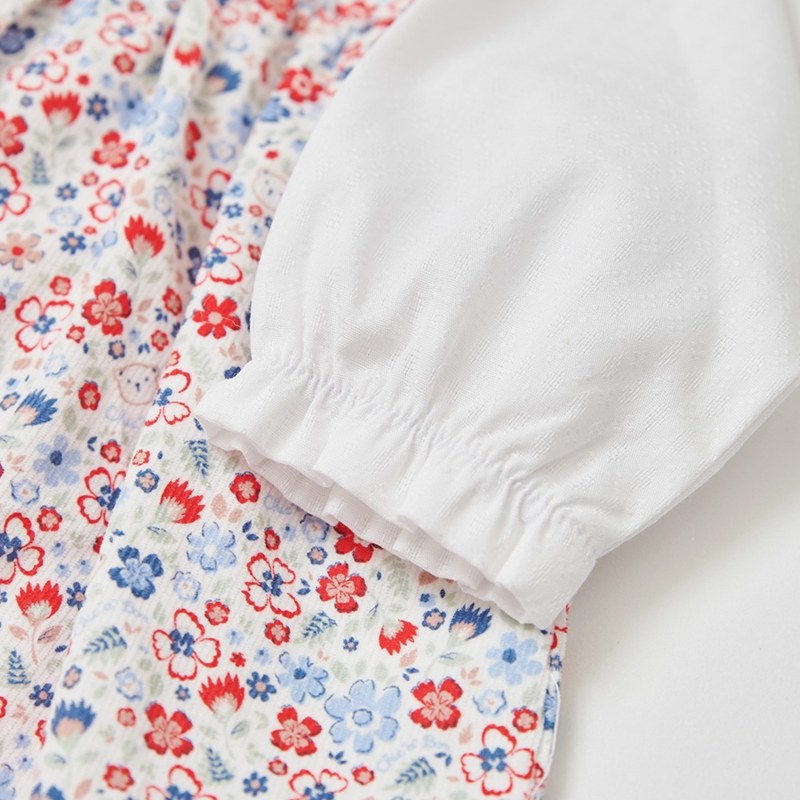歡樂熊碎花蝴蝶結假兩件長袖兔裝