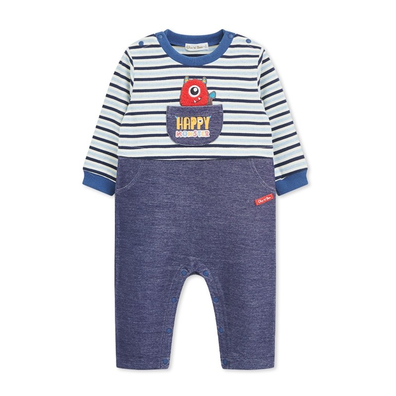 怪獸俱樂部牛仔藍雙側開長袖兔裝 (吸濕排汗)
