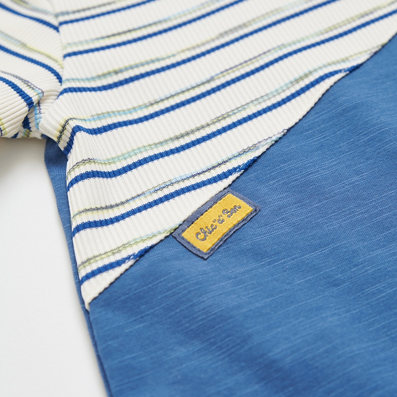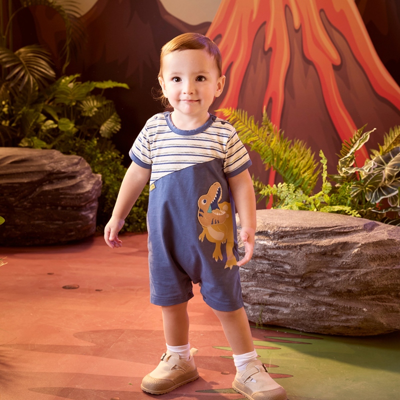恐龍探險趣條紋拼接短袖兔裝