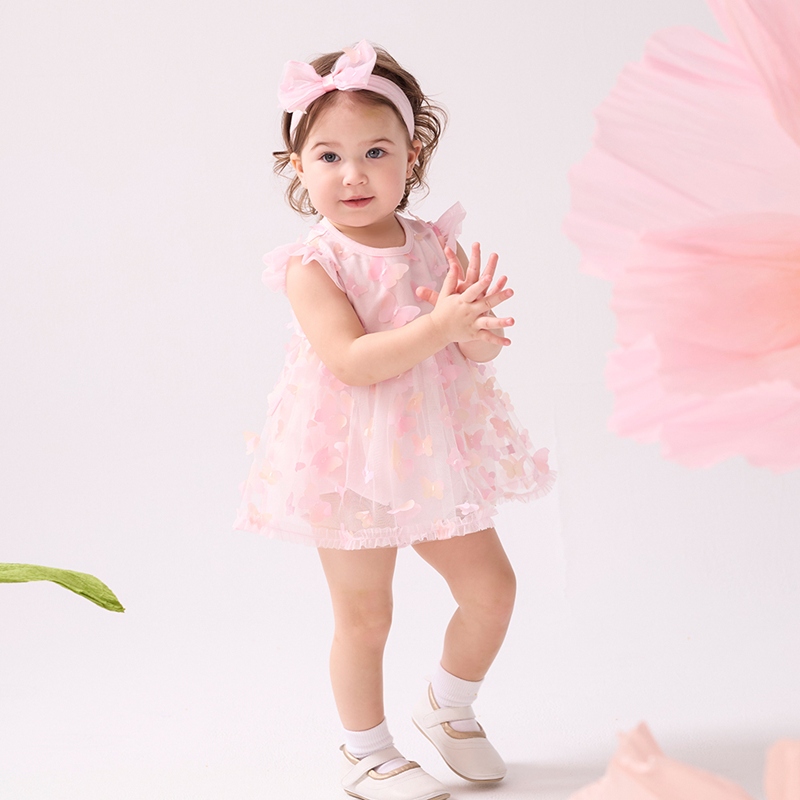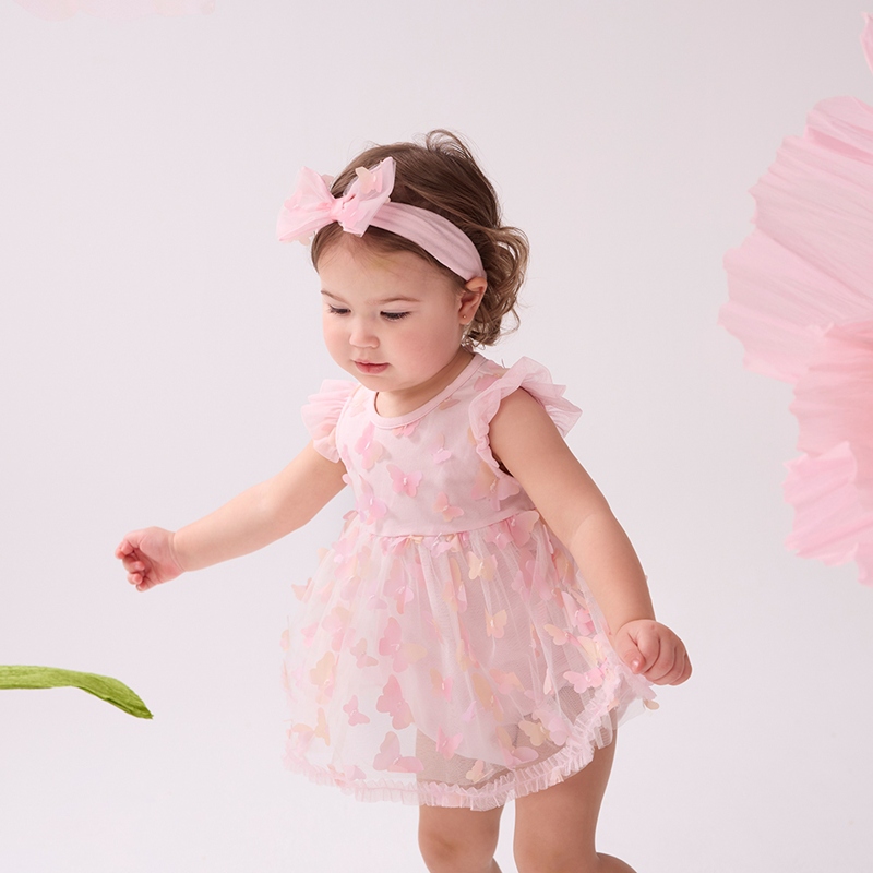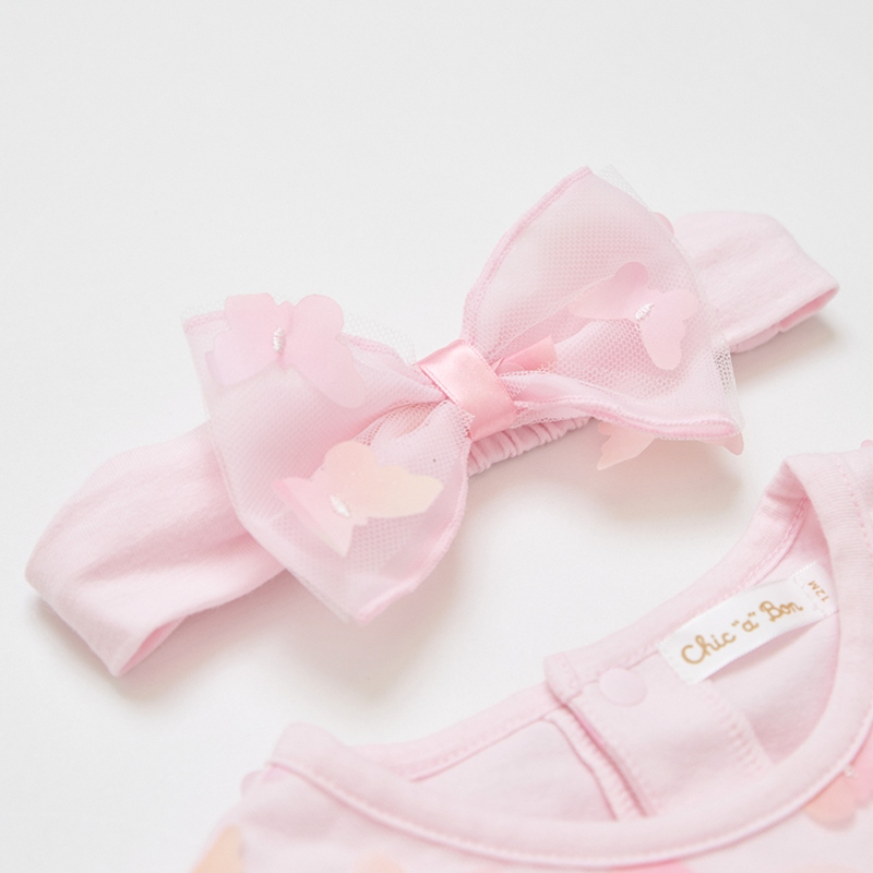 花蝶熊立體蝴蝶短袖兔裝-附髮帶