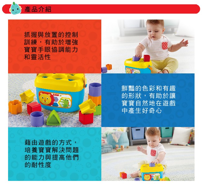 ●鮮豔的顏色和有趣的形狀有助於在遊戲時間,自然地吸引寶寶的好奇心。