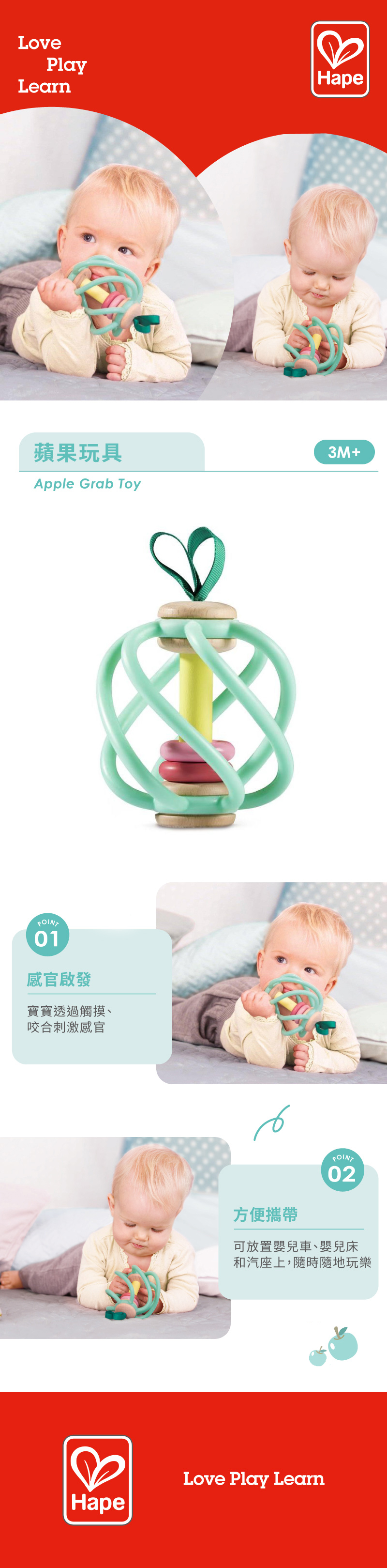 2.Apple Grab 玩具牙膠可以讓小手指和小嘴在數小時內保持忙碌。