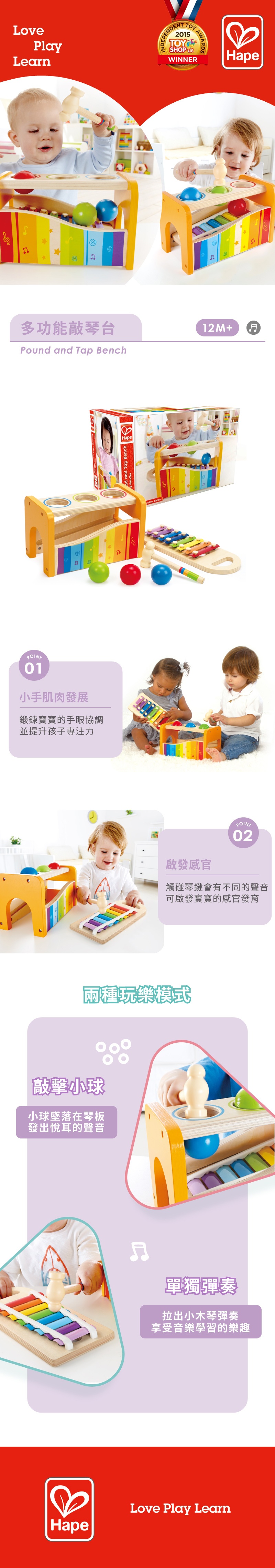 二合一多功能敲琴台,孩子可以敲擊檯面上的小球,使它們墜落在琴板上,發出悅耳的聲音,