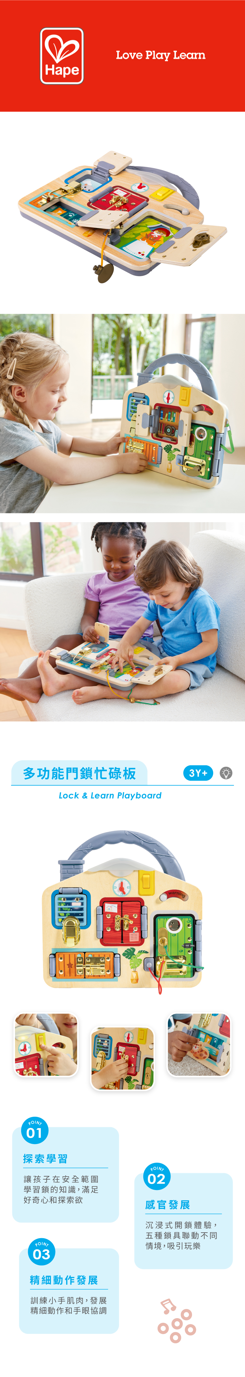 解放爸媽神器,可以發展培養小朋友邏輯思維能力、動手能力,還可以幫助講故事。不同的鎖和開關可以供小朋友探索,開門後更有驚喜等待小朋友!