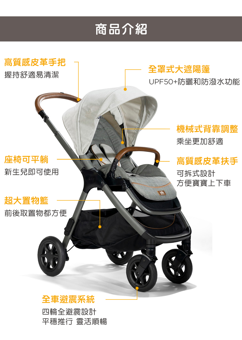 ●獨特FLEX座椅避震設計,應付顛簸路面,寶寶安穩睡