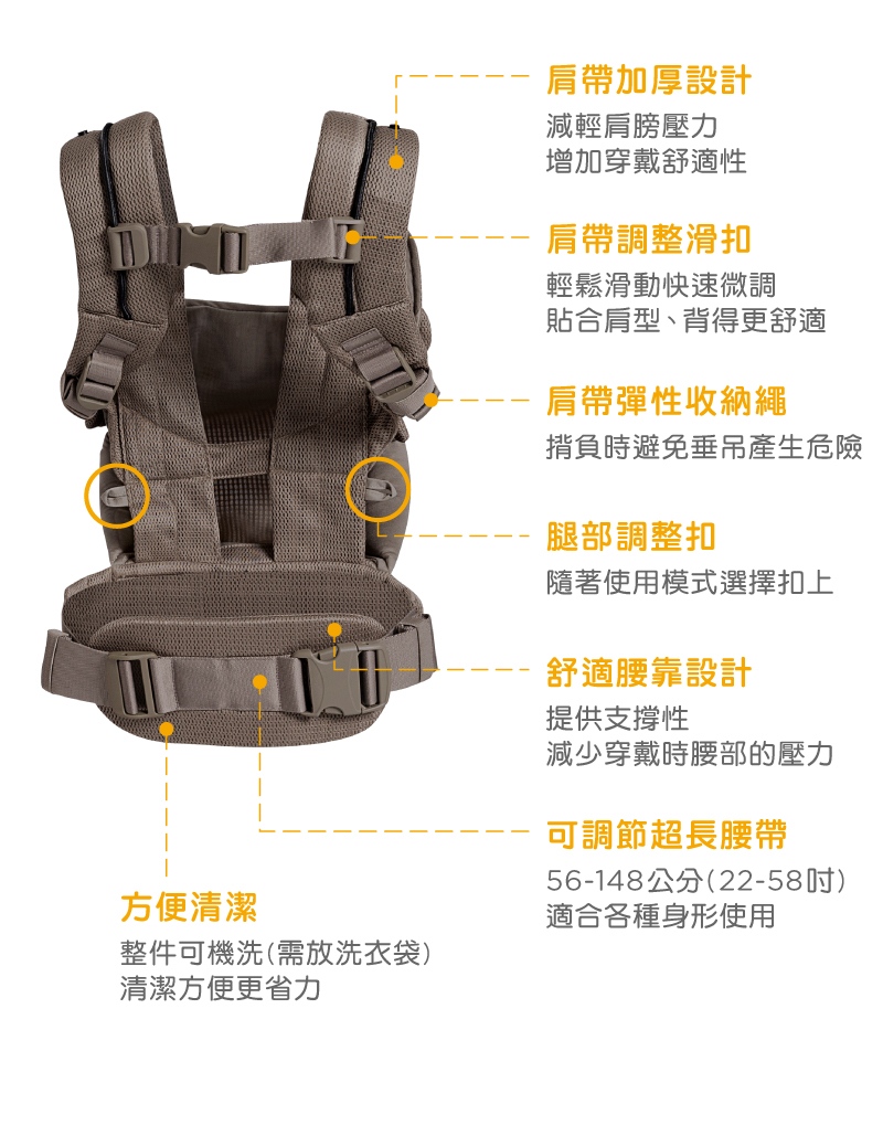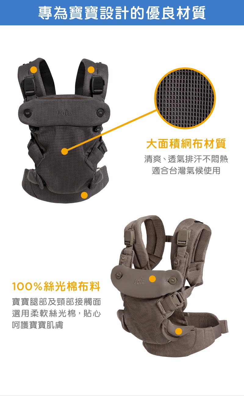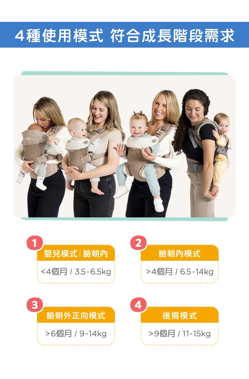 1.臉朝內正向式/ 嬰兒模式—3.5-6公斤(最小年齡0個月,最大體重6.5公斤)