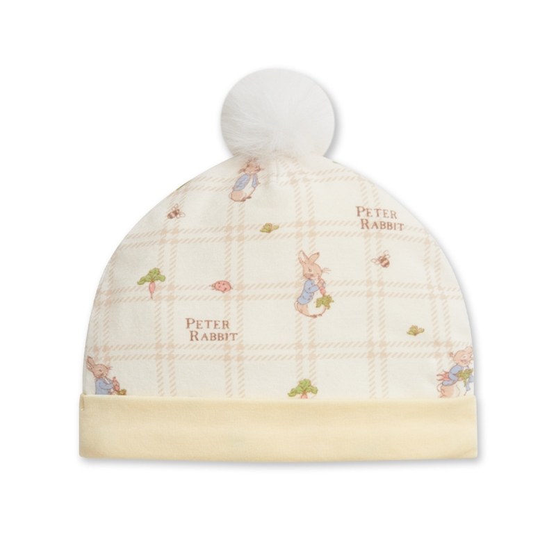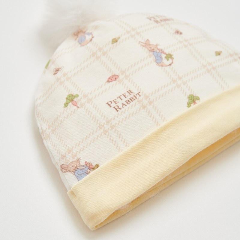 格紋比得嬰兒帽 (美麗諾羊毛布)