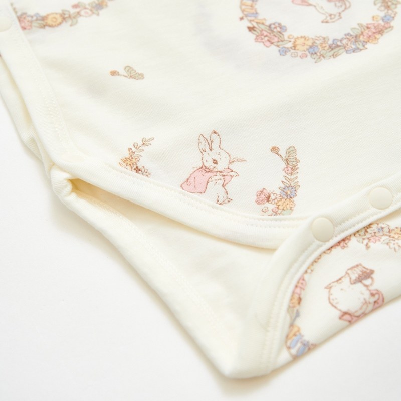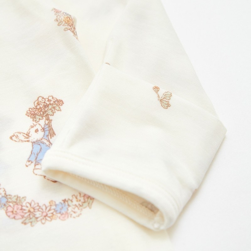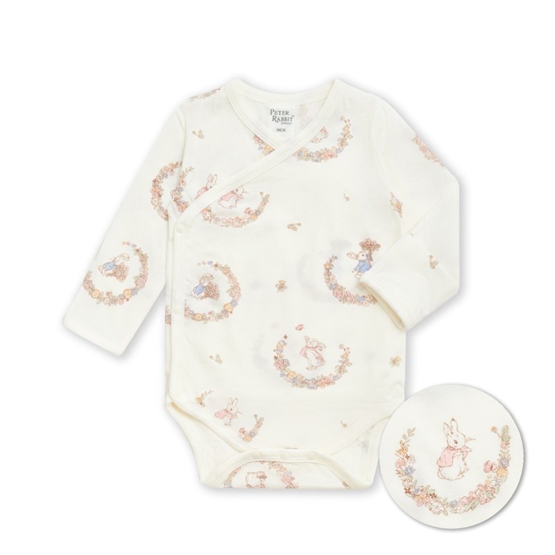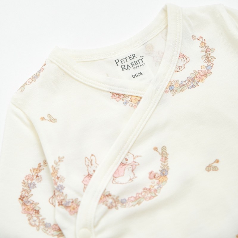 花冠比得長袖開襟包屁衣 (美麗諾羊毛布)