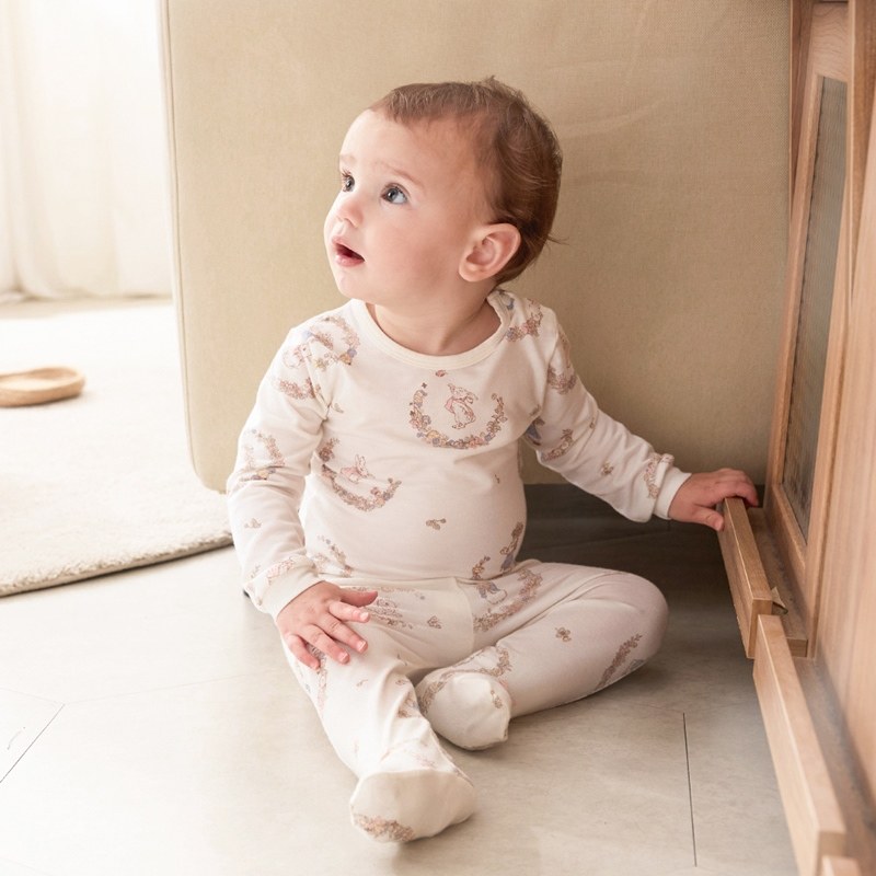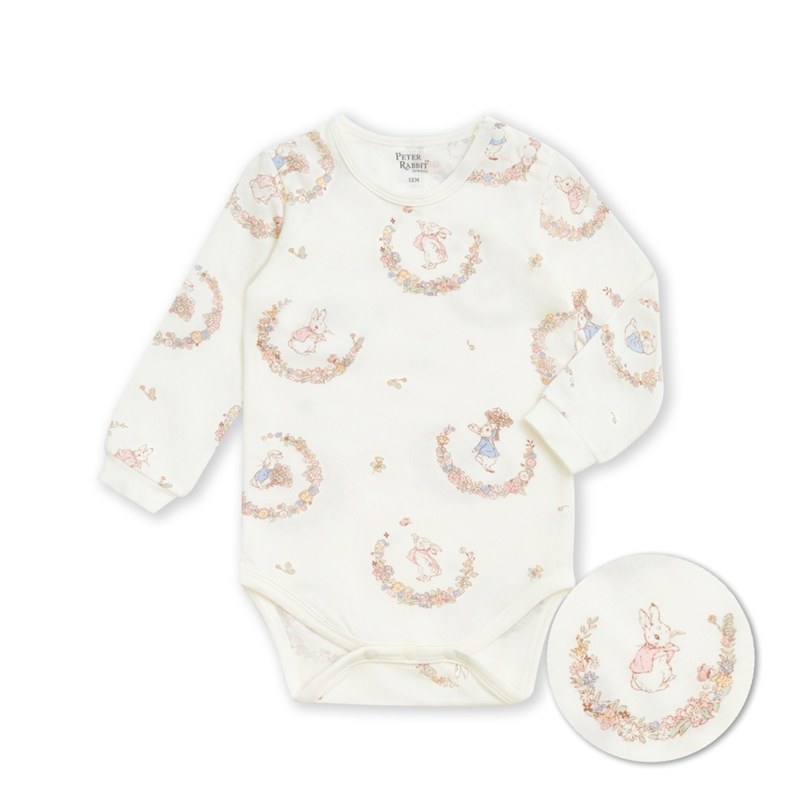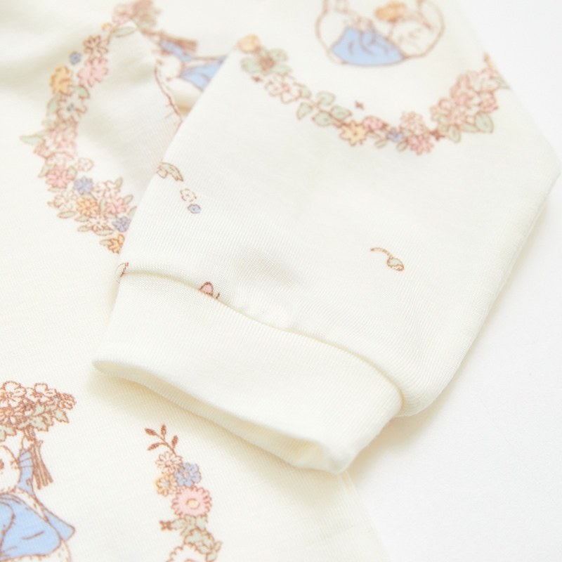 花冠比得長袖側開包屁衣 (美麗諾羊毛布)
