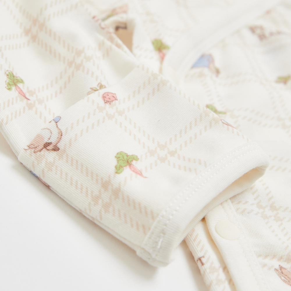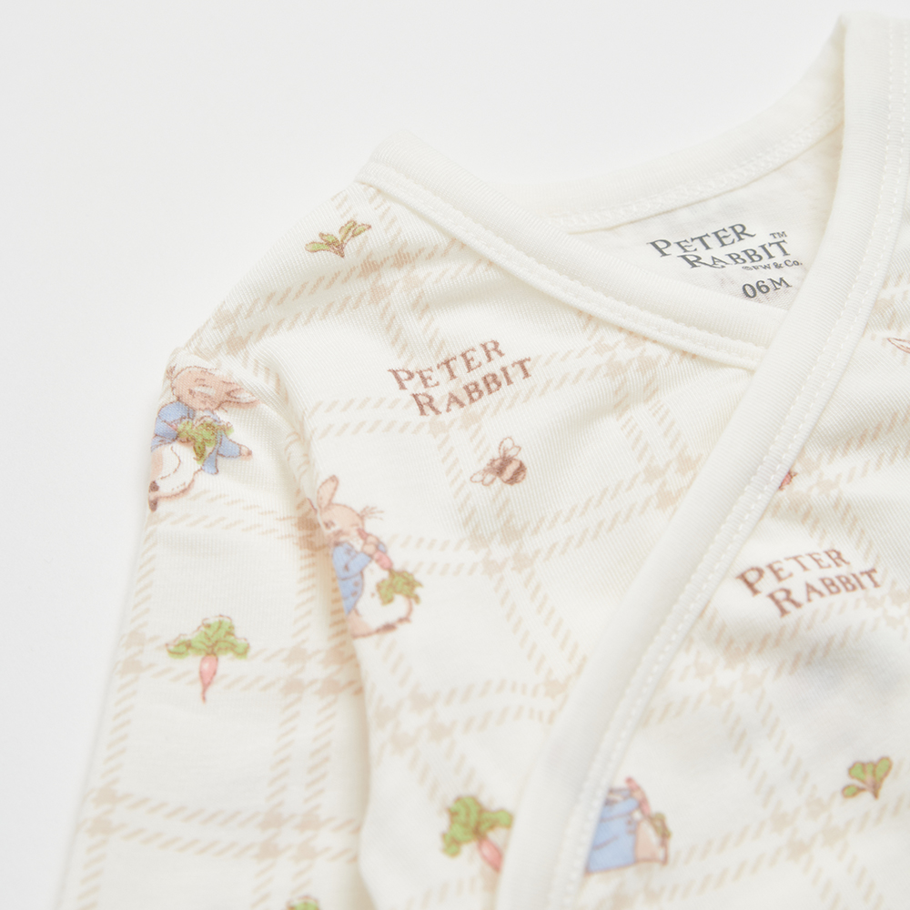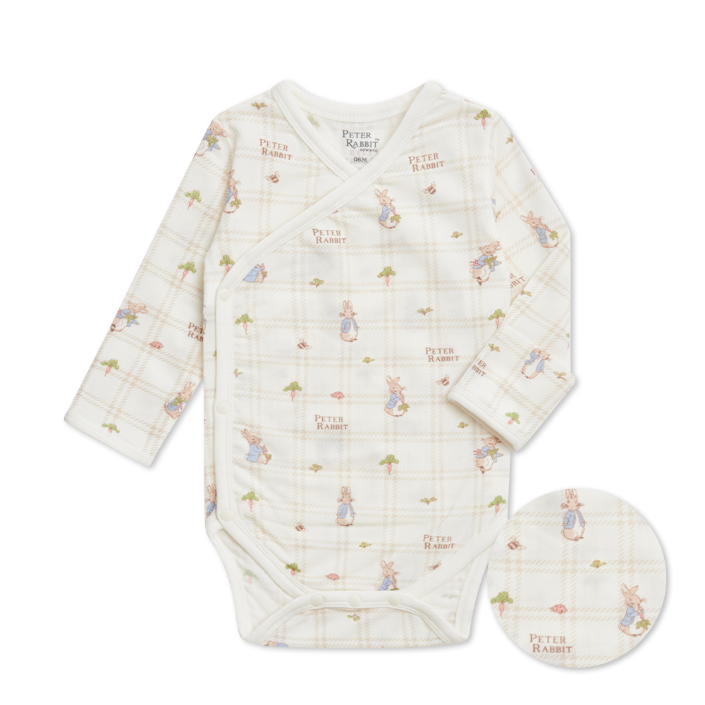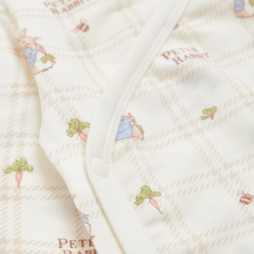 格紋比得長袖開襟包屁衣 (美麗諾羊毛布)