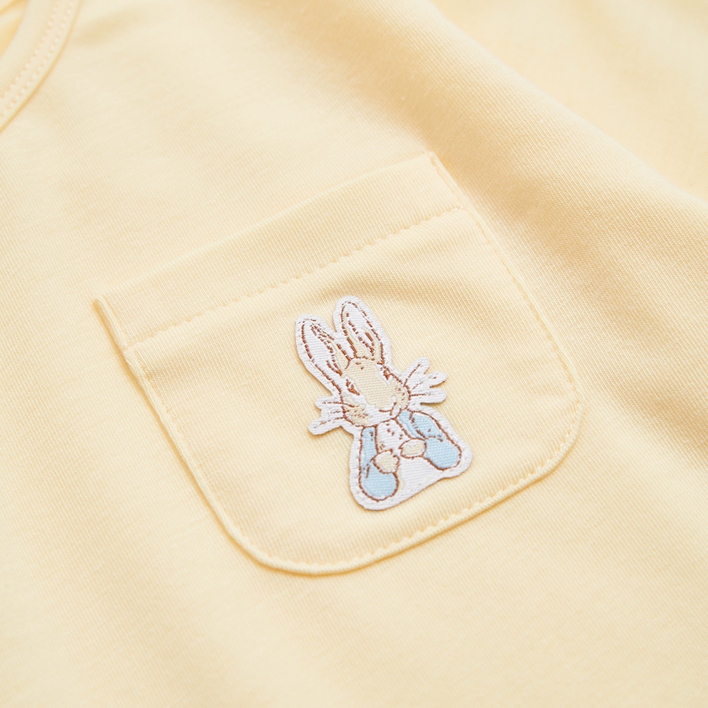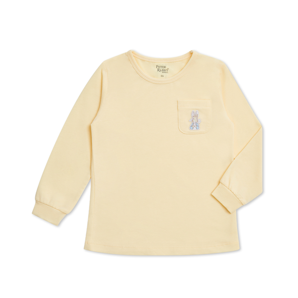 格紋比得黃色長袖圓領衫 (美麗諾羊毛布)