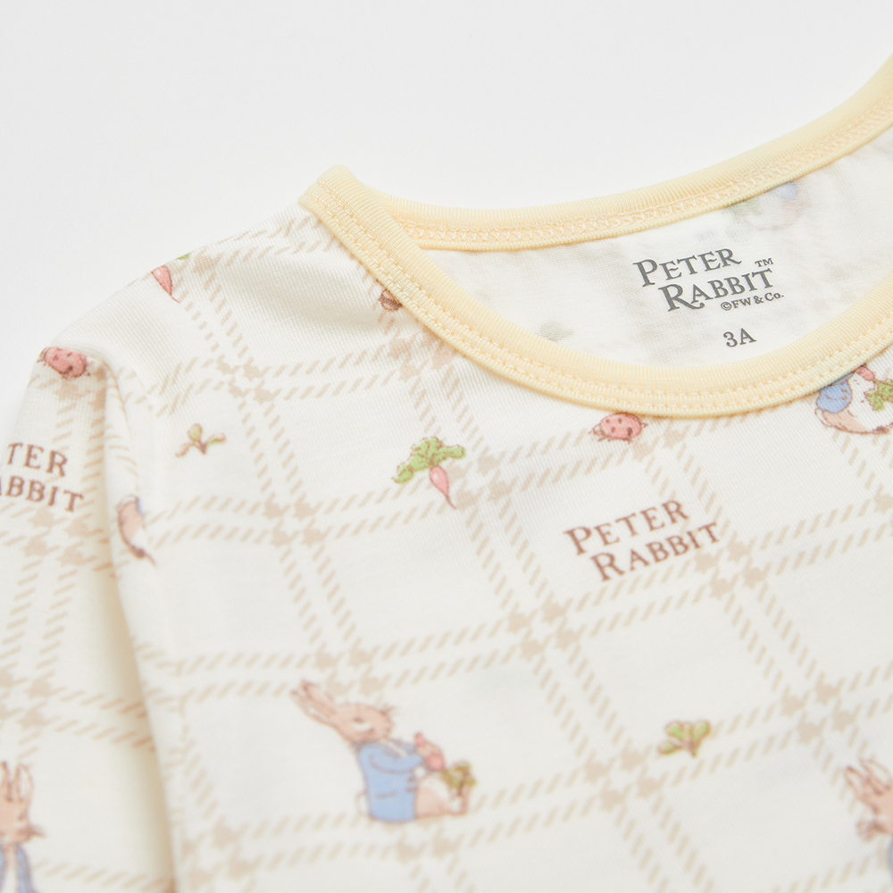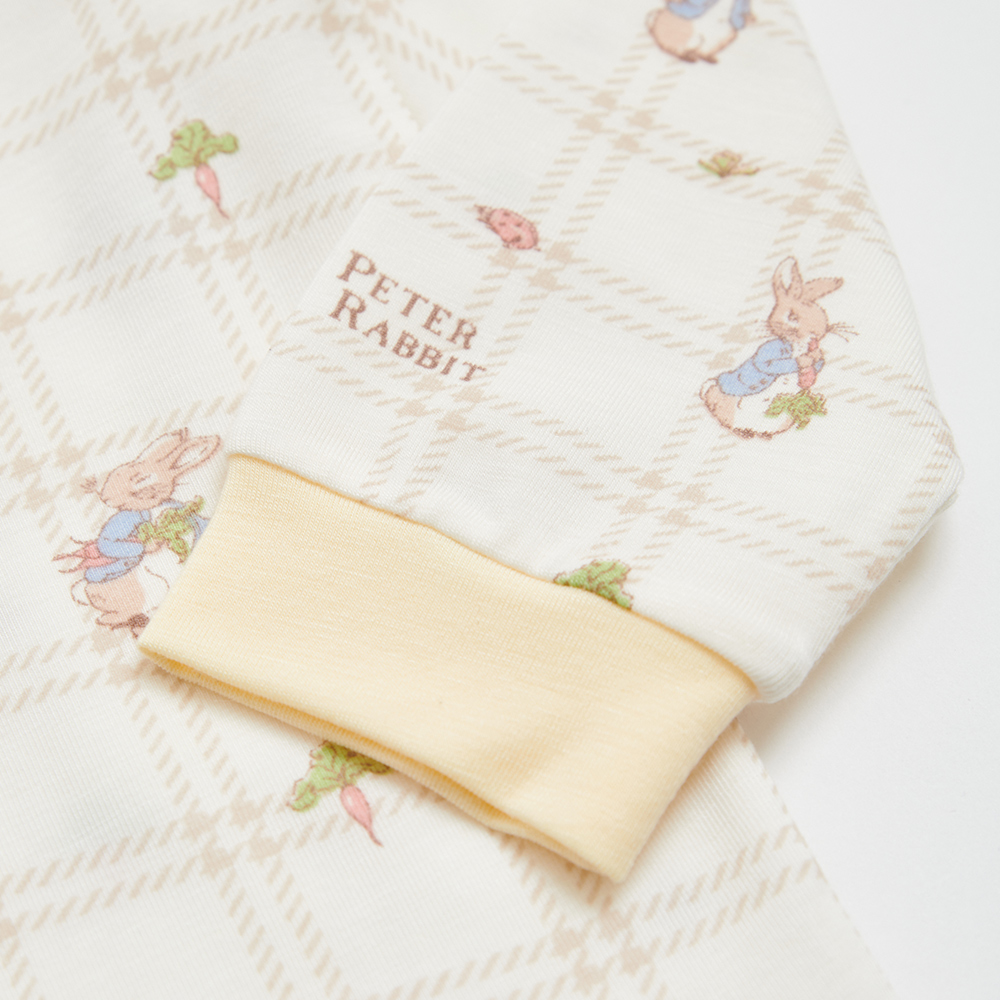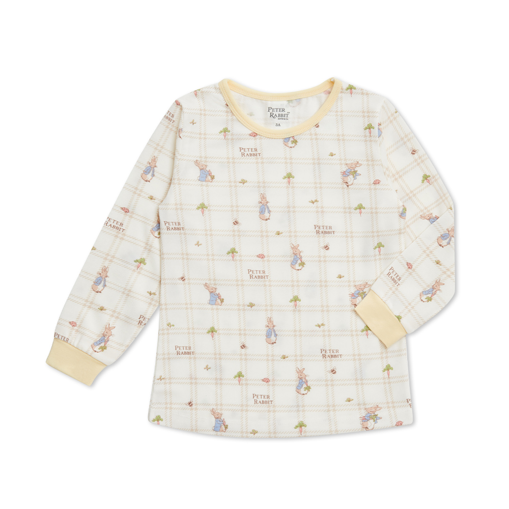 格紋比得白色長袖圓領衫 (美麗諾羊毛布)