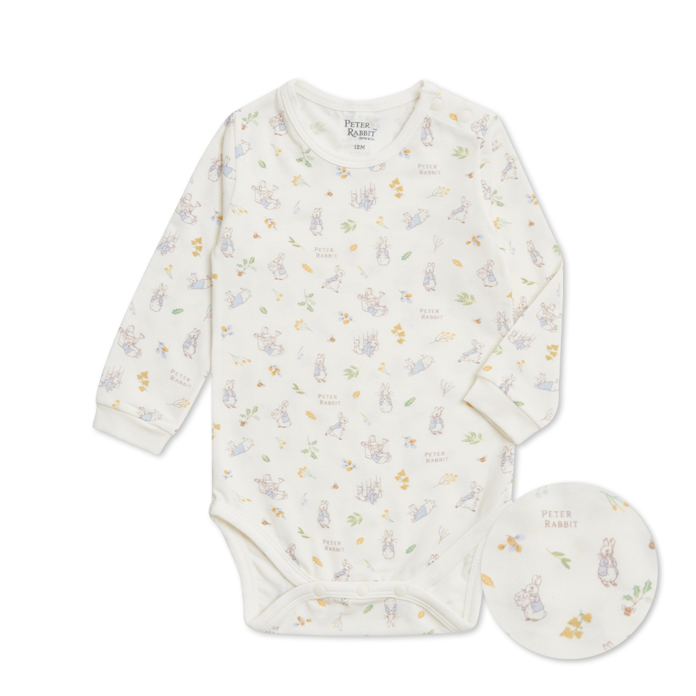 綠映比得長袖側開包屁衣 (美麗諾羊毛布)