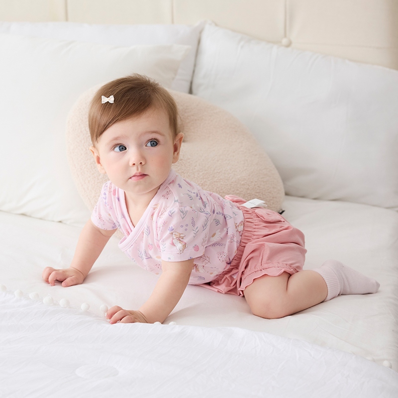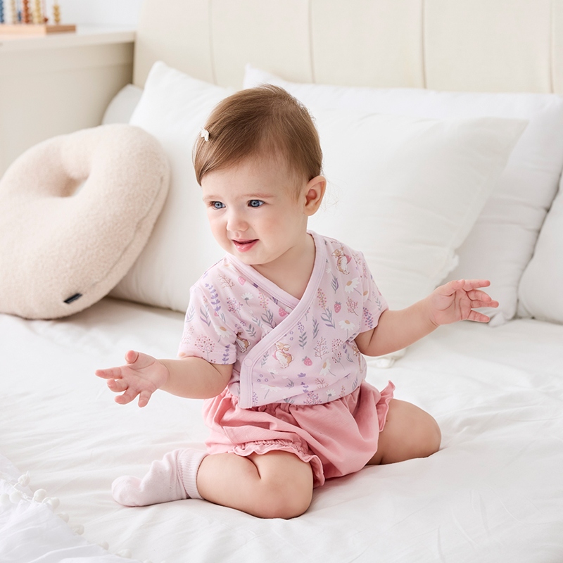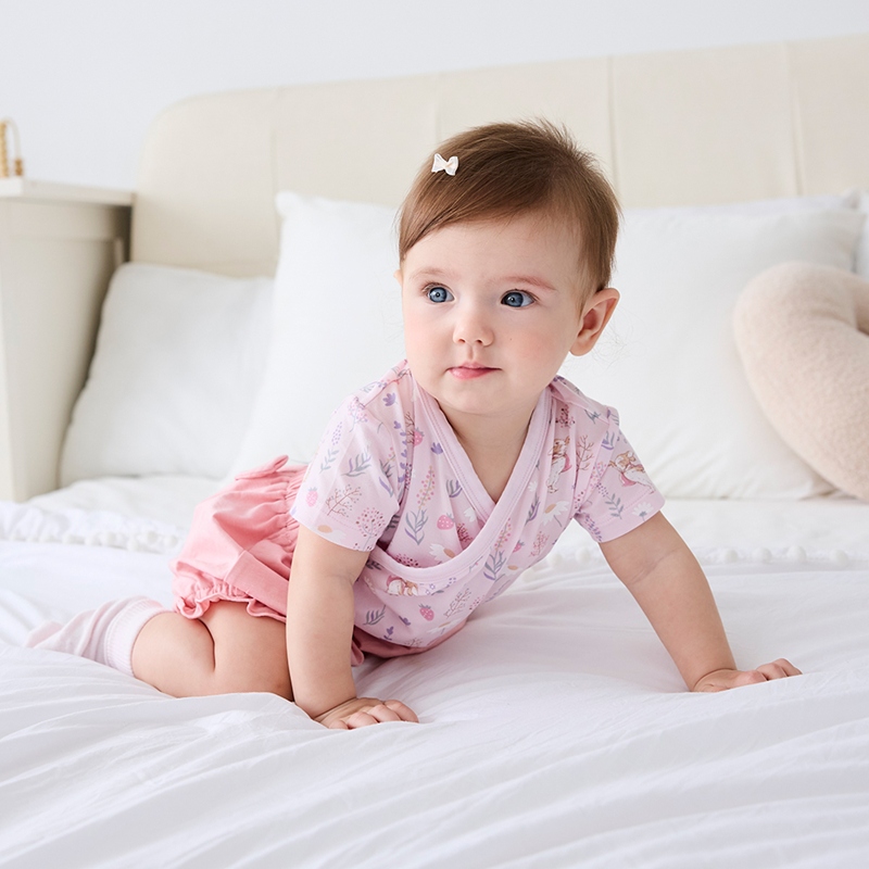 採花趣短袖兩段式調節開襟包屁衣 (水晶紗)