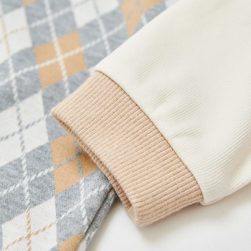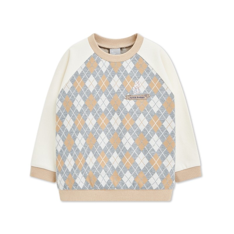 學院比得男緹花菱形拼接長袖T恤
