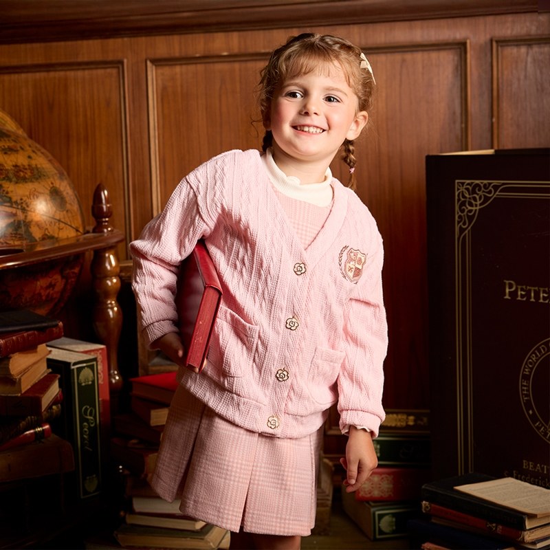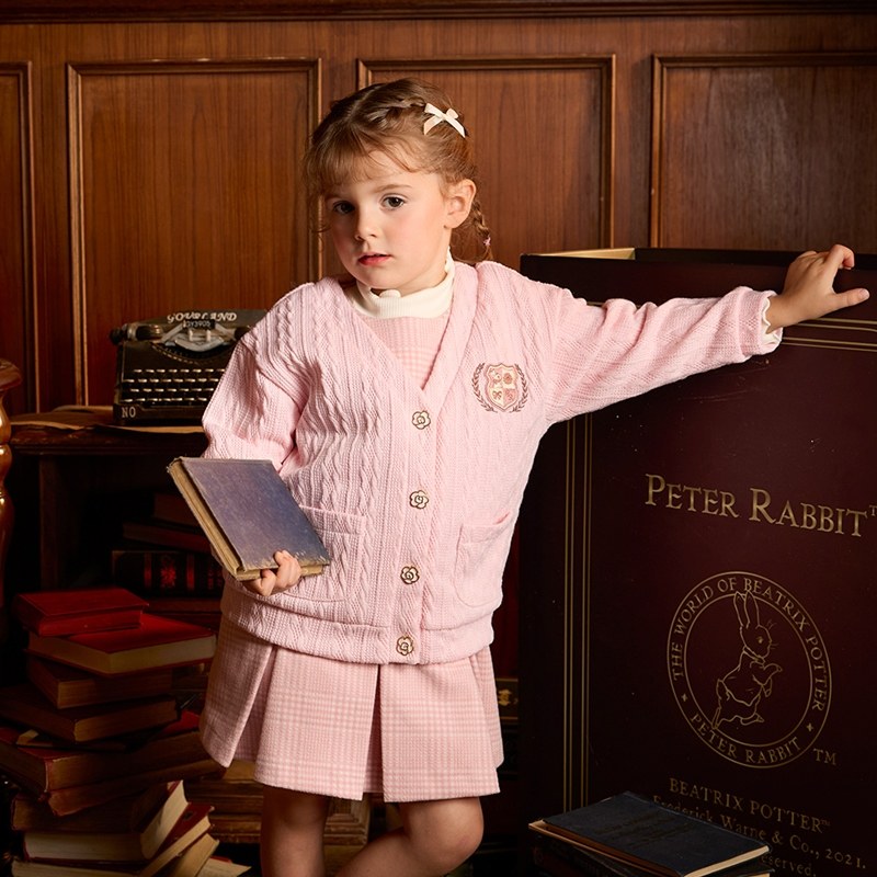 學院比得女甜美粉嫩針織夾層外套