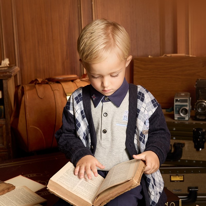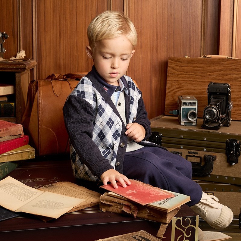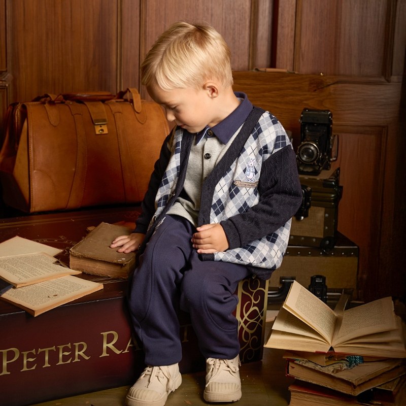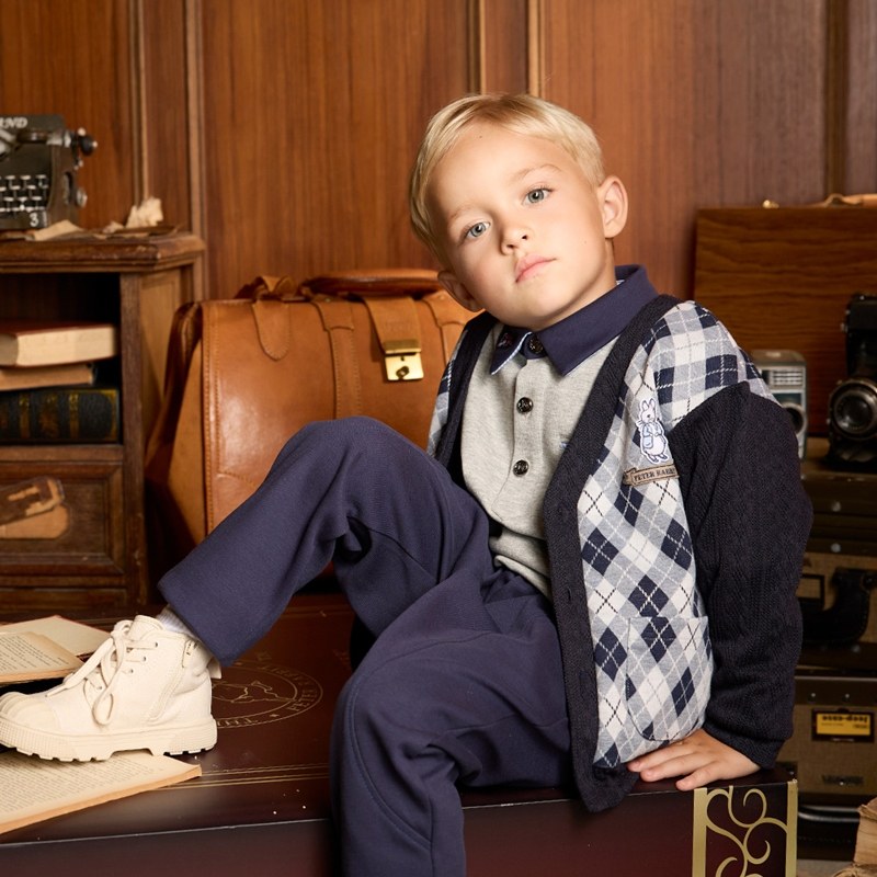 學院比得男緹花菱形針織外套