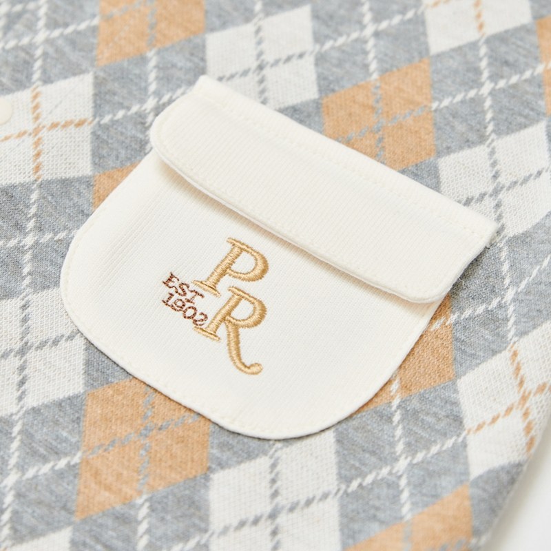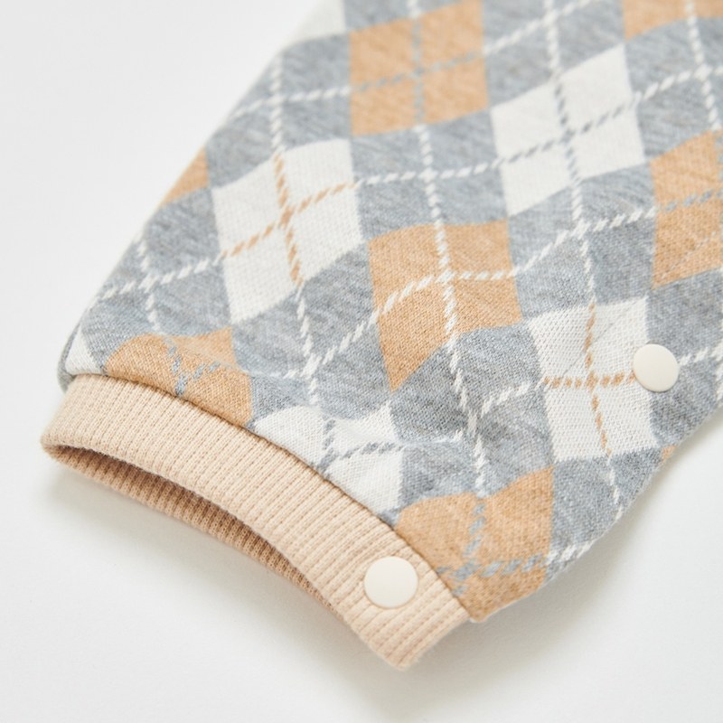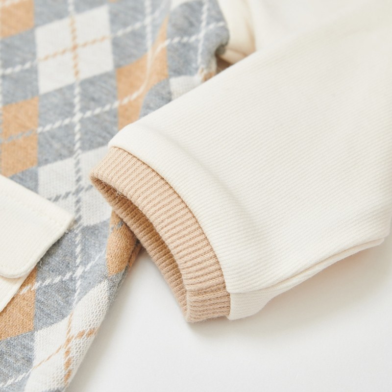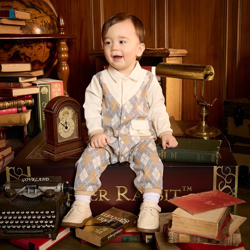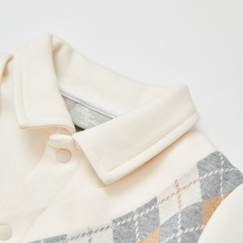 學院比得男緹花菱形假兩件長袖兔裝