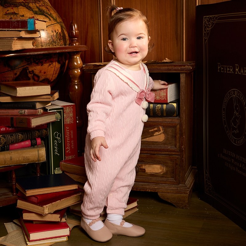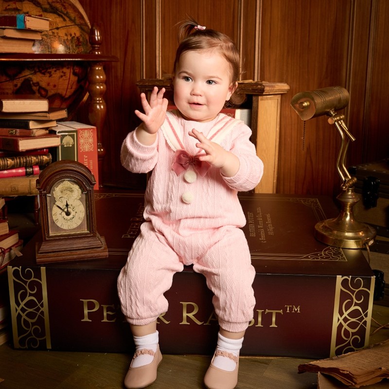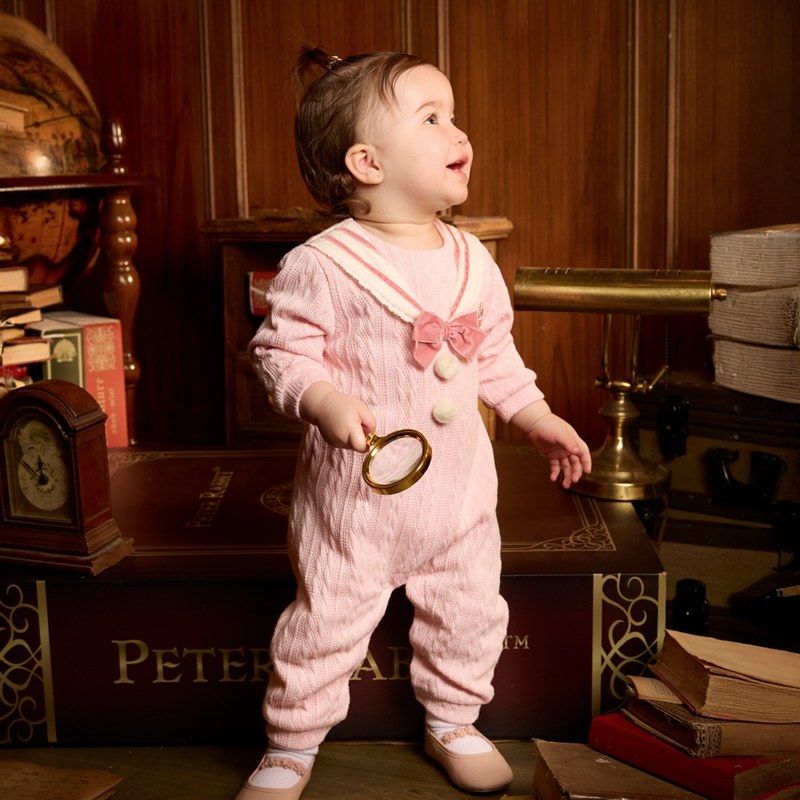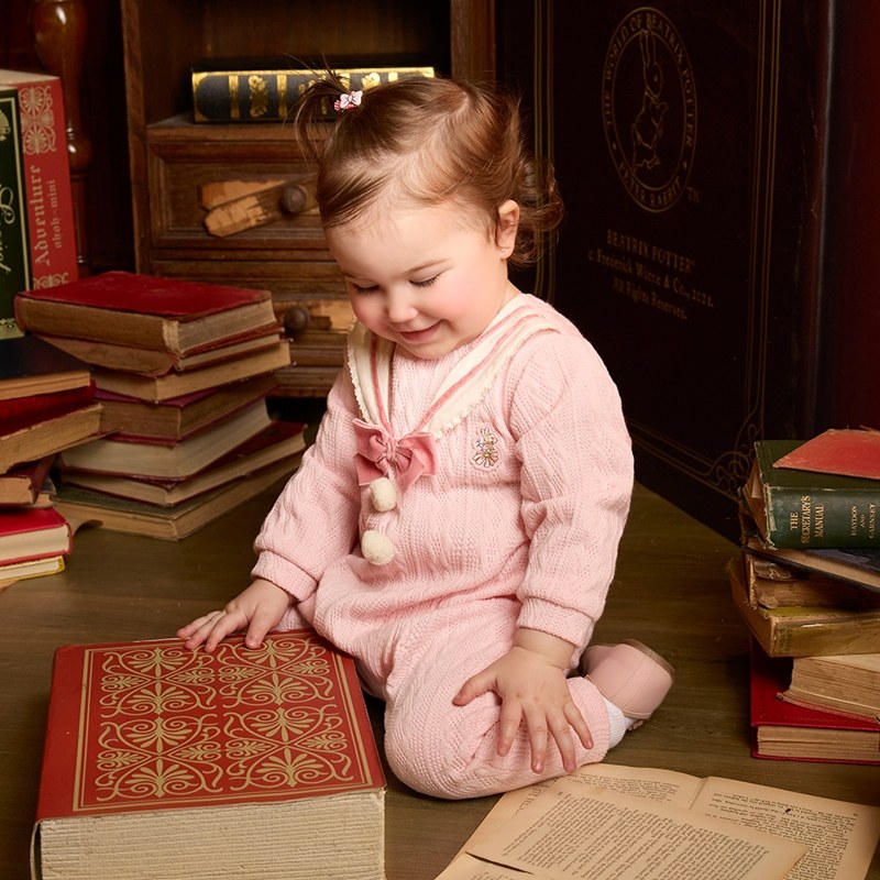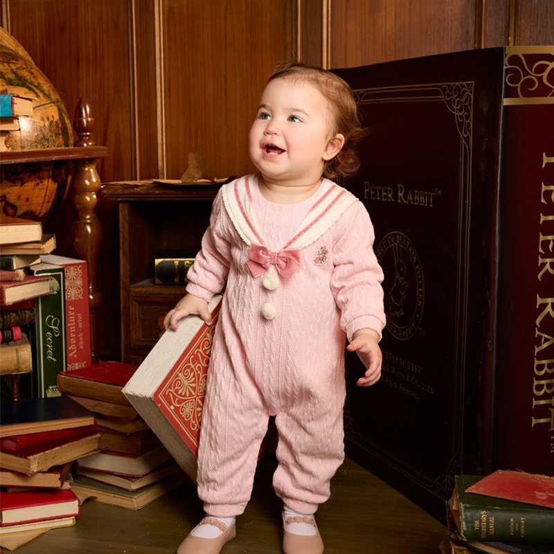 學院比得女蝴蝶結水手領針織長袖兔裝