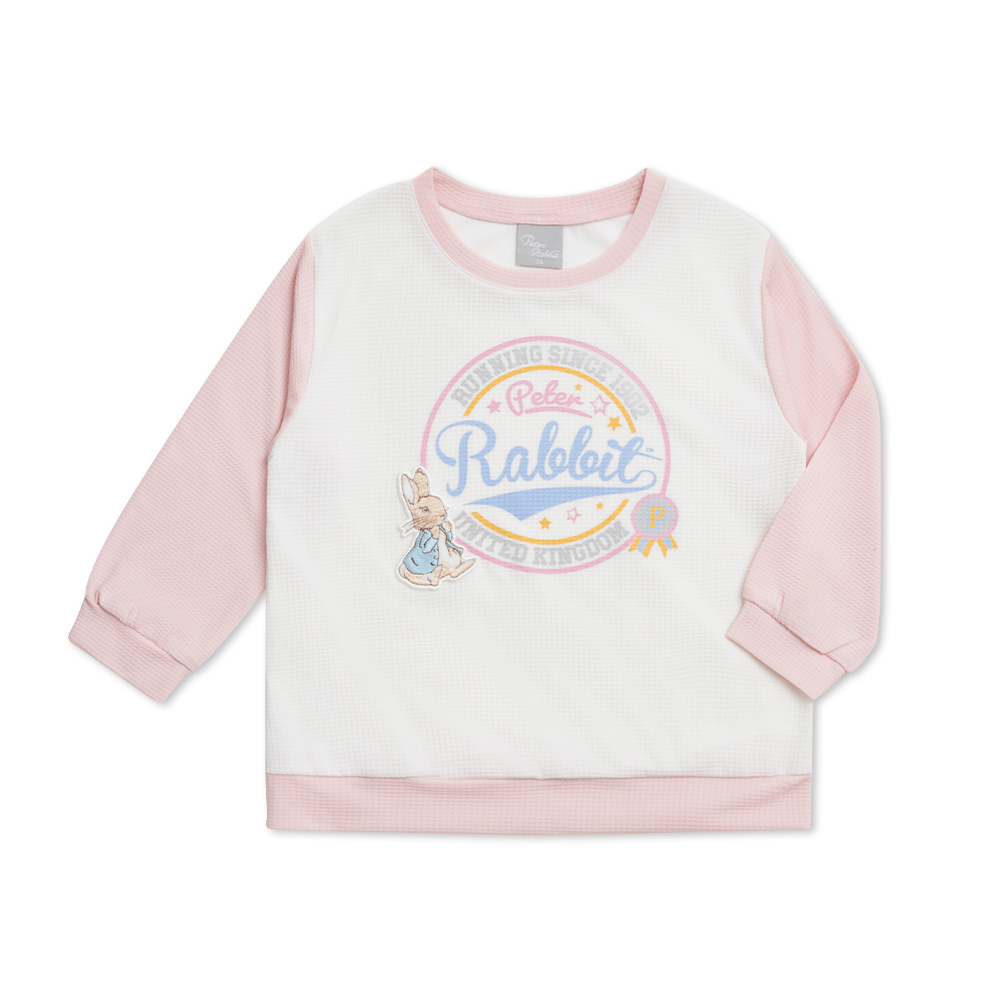 防蚊比得粉白拼接長袖圓領衫 (物理性防蚊)