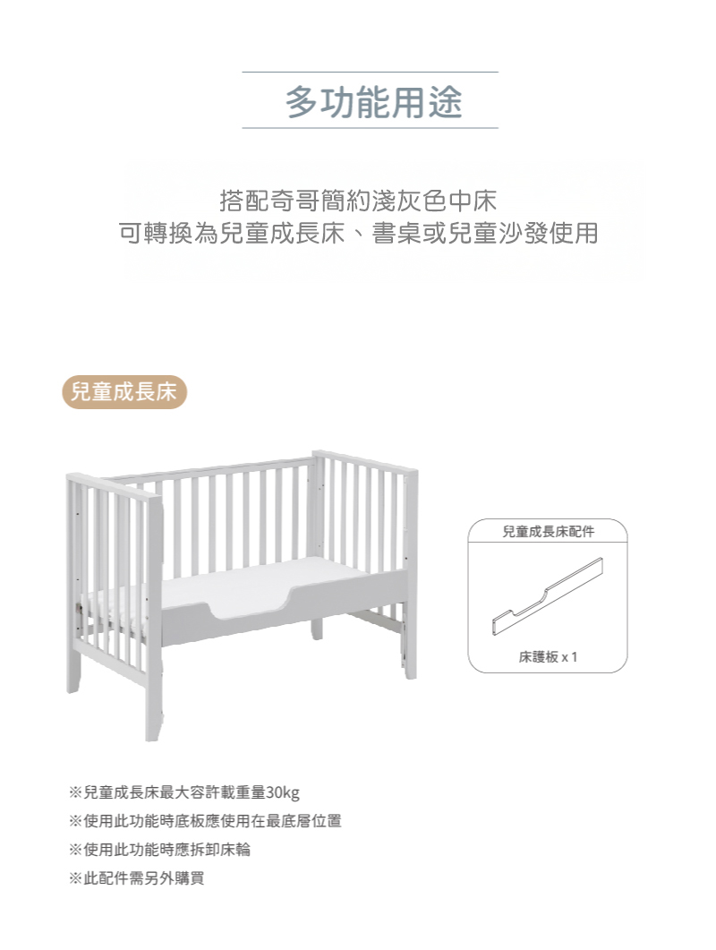 4. 嬰兒成長床最大容許載重量30公斤。