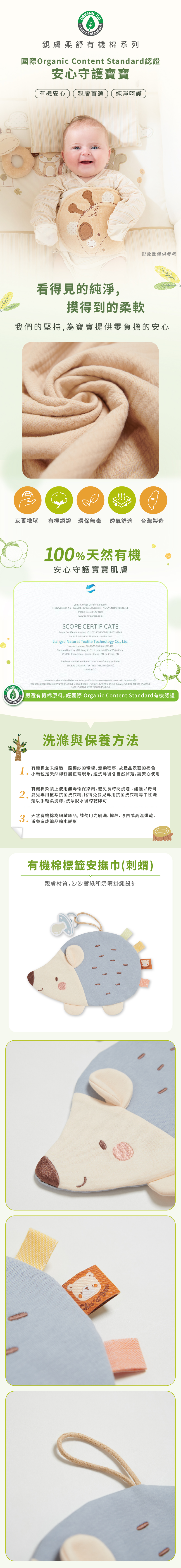 1.選用天然有機棉,不含農藥、不經化學處理,守護敏感肌寶貝,也守護地球環境