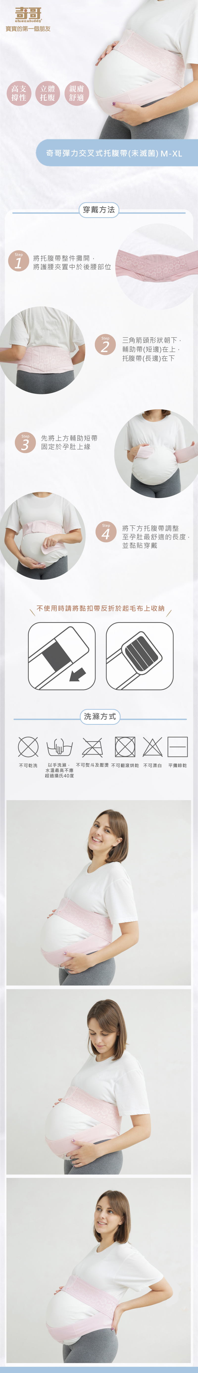 2.專為亞洲孕媽設計的交叉織帶角度,提供孕肚舒適服貼的包覆及避免因活動產生位移。