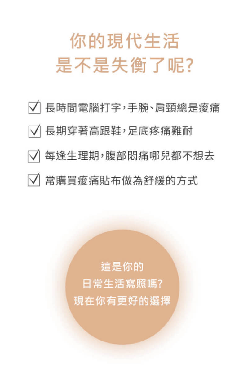 ● 肩、頸、手、腿、腳、背等不適皆可使用