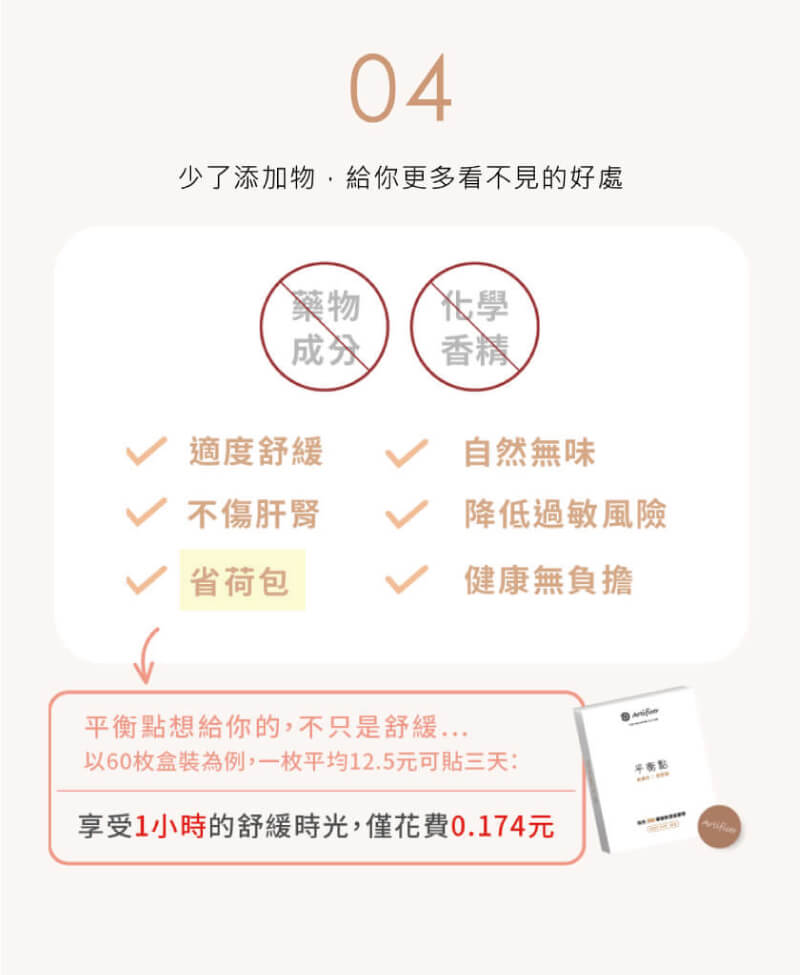 8. 貼布更換頻率,請視個人膚況與敏感程度而定,建議多天數使用後須讓皮膚休息。