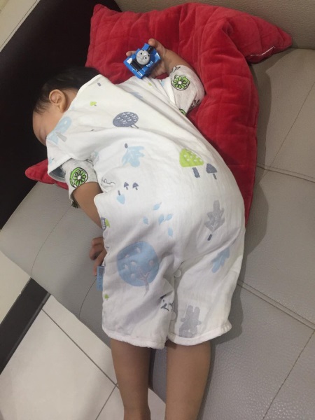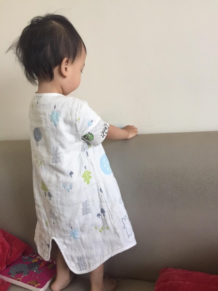 但是奇哥這款防踢背心,我寶寶完全不排斥穿!我覺得是因為材質舒服不會悶熱,然後尺寸選的剛好,這點是很重要,如果不稱身的話會影響舒適度和寶寶的接受度,所以千萬不要覺得買大一號會比較耐穿哦!而且我覺得最重要的原因是,它可分褲腿的設計真的很棒,讓我寶寶能活動自如的,感覺就好像在穿普通的衣服而已。不像以前的防踢被,讓他覺得被管束被限制了!能活動自如很重要啊,我想寶寶們都幾乎不可能穿了防踢背心就秒睡吧?都應該會在床上打滾好一陣子才願意睡,所以方便活動是重要的!當他穿奇哥的森林家族四層紗兩用防踢背心,就完全沒有半點討厭想要脱下來的舉動。