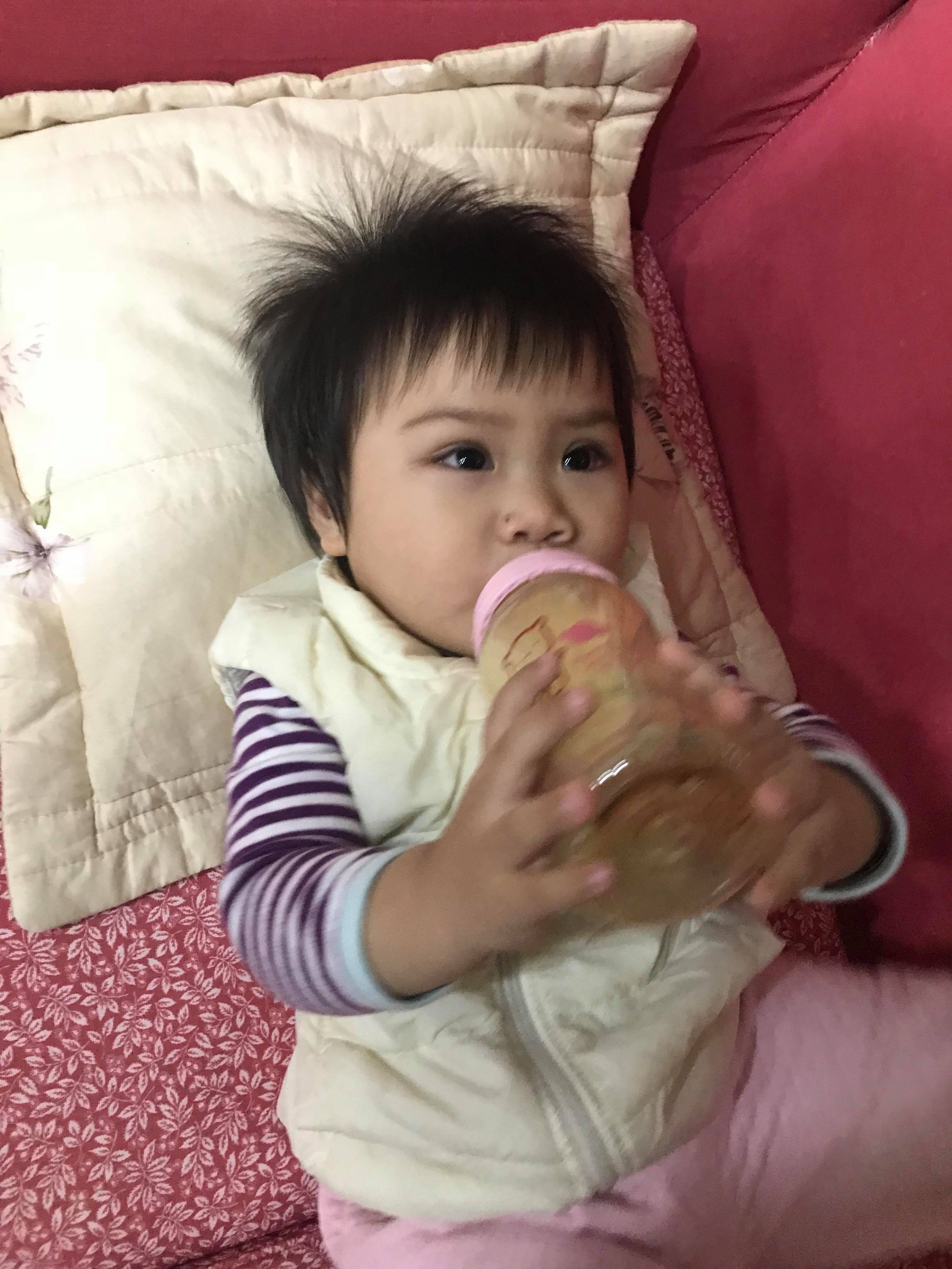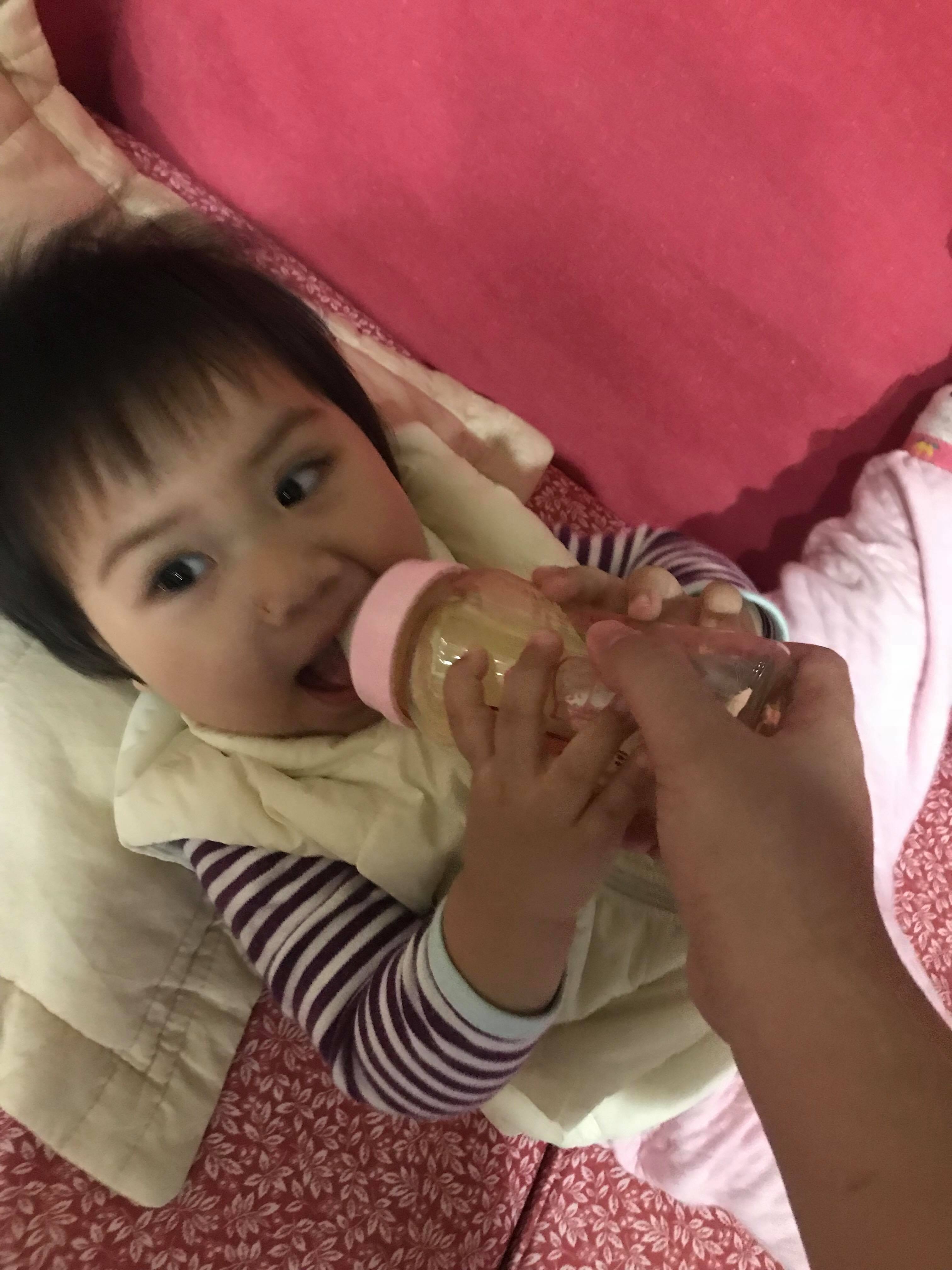 妹妹也一歲了,原本奶瓶上的奶嘴孔有點小了
