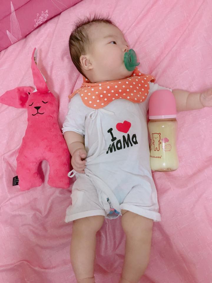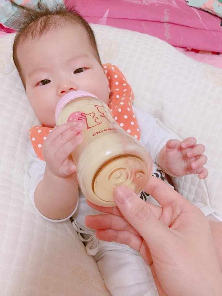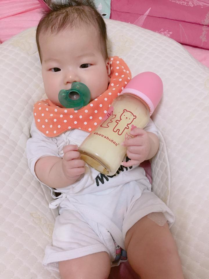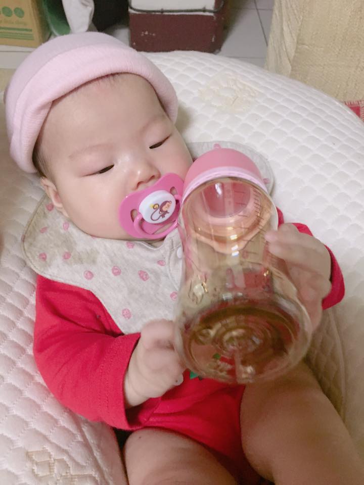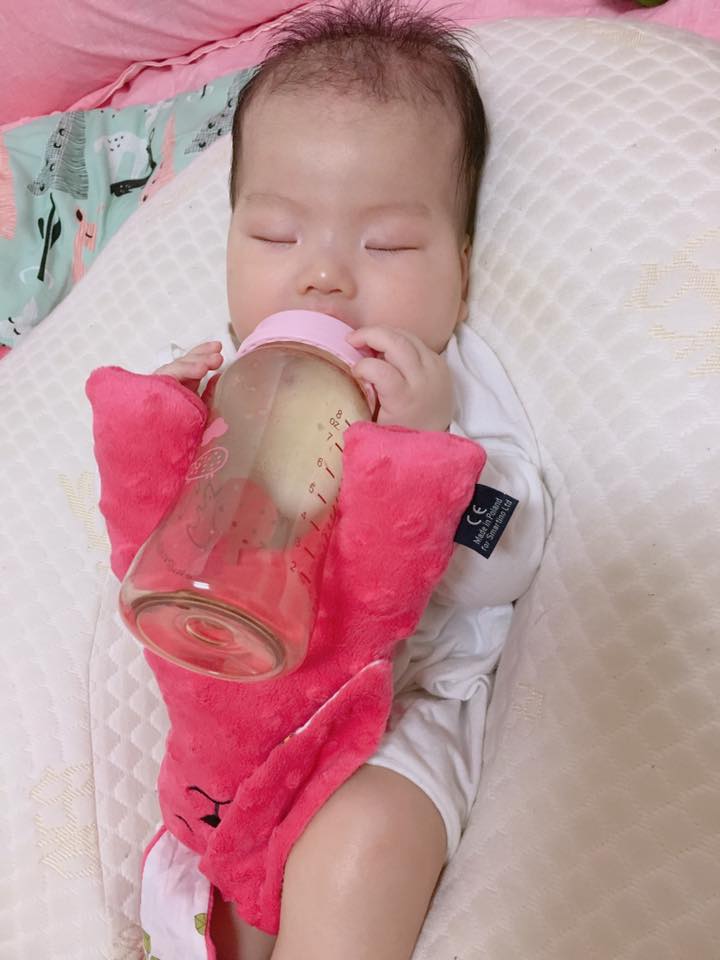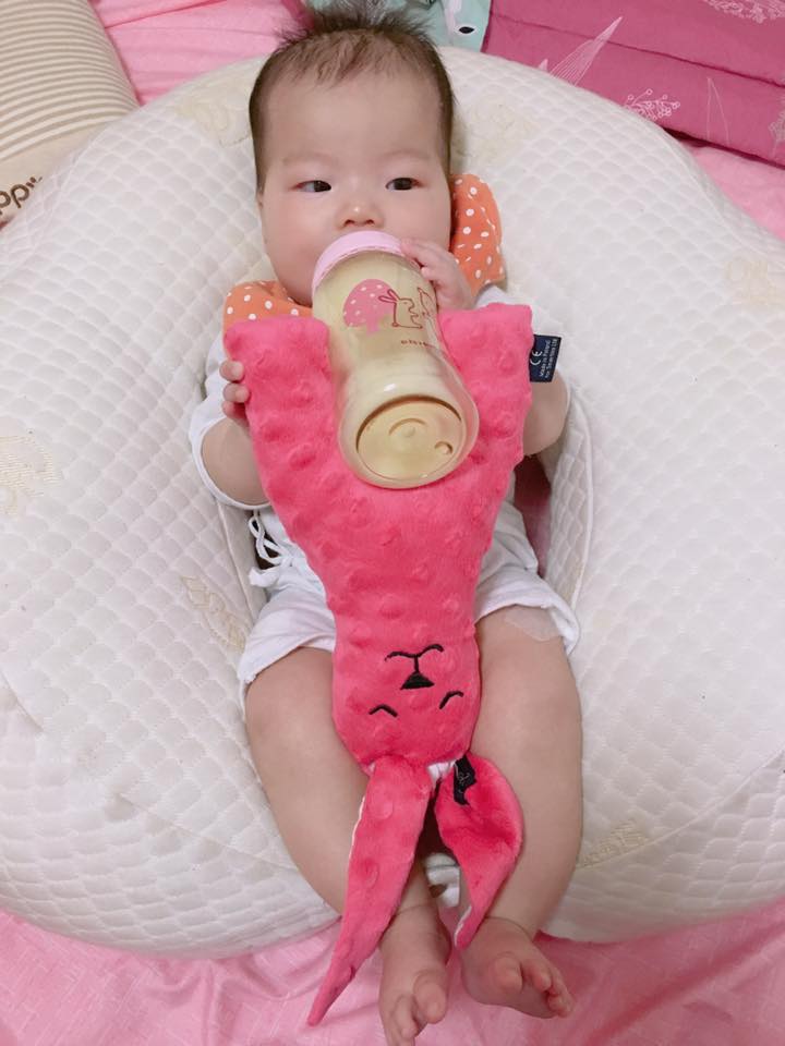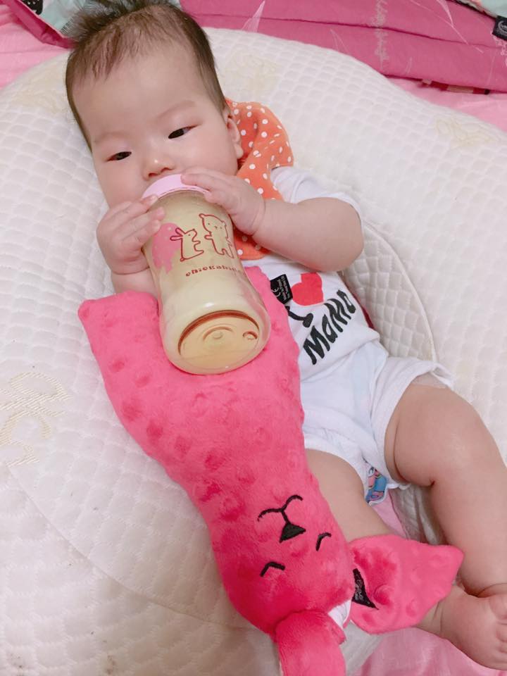 然後金金就能自己扶著奶瓶喝ㄋㄟㄋㄟ了?